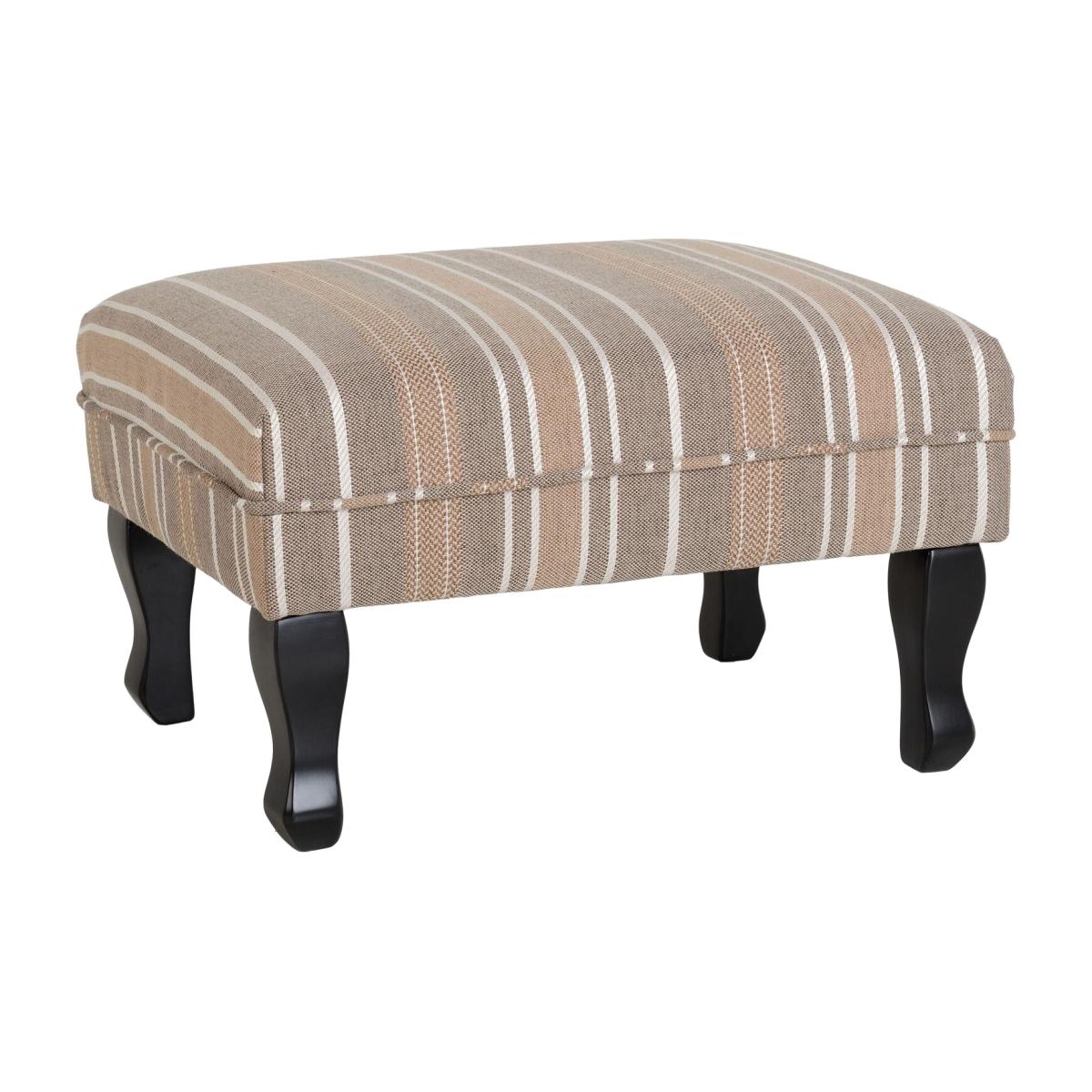I love this footstool for its classic, understated style and versatile colour palette. The beige stripe pattern is neutral enough to suit a variety of interiors, from traditional to contemporary, making it a flexible choice for many living spaces. The dark, slightly curved legs add a touch of elegance and contrast nicely with the lighter fabric. It works particularly well paired with a neutral sofa or armchair, adding both comfort and practicality without overpowering the room. Practical styling tips include using it as a perch for your feet or as extra seating for guests, and because of its subtle pattern, it can be easily accessorised with textured cushions or throws for a layered look. An excellent, functional addition to any cosy or stylish lounge area.
