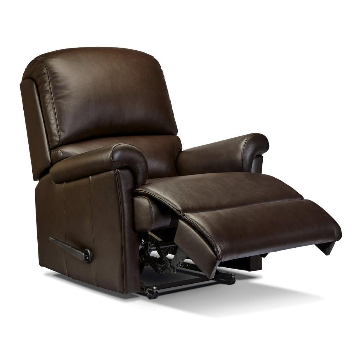 The Nevada Collection offers exceptional comfort with its soft, welcoming back design and soft 'pillow' arms. Available in a comprehensive array of sizes and options with manual and power reclining actions across the entire range. Complimenting the traditional range items are a selection of riser recliners which are available in 4 sizes and both single and dual motor versions. Note that all models in the Nevada Collection feature a sectional construction to aid delivery. Shown in Manhattan Chocolate. Exceptionally comfortable Large Recliner also available in Small and Standard sizes. The Nevada design features a soft, fibre-filled back, soft ‘pillow’ arms and full-width ‘chaise’ seating. Width: 93cm Depth: 102cm Height: 105.5cm PERSONAL 5 YEAR GUARANTEE on all actions, frames and electrical parts Supplied with lift-off back for ease of delivery into the home Choice of Finger-release Catch or Handle Release on Manual Recliners Choice of Leather or Soft Covers