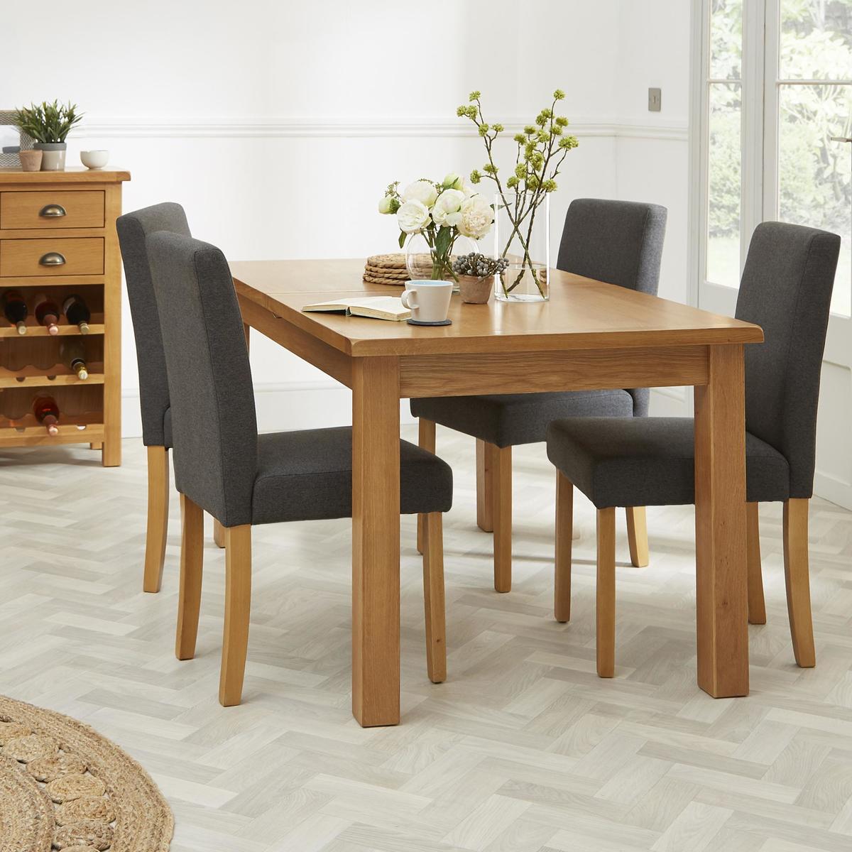 I love this table for its clean, versatile look and the warm, natural oak finish. It works particularly well in both contemporary and traditional interiors, adding a touch of understated elegance without overpowering the space. Its extending feature is a real bonus for accommodating extra guests, making it perfect for both daily family life and dinner parties. For styling tips, consider pairing it with minimalistic chairs for a sleek aesthetic or opting for upholstered or vintage-inspired seating to introduce texture and colour. Keeping accessories simple, like a centrepiece or a runner, allows the beautiful oak to be the star while creating a practical, inviting dining area.