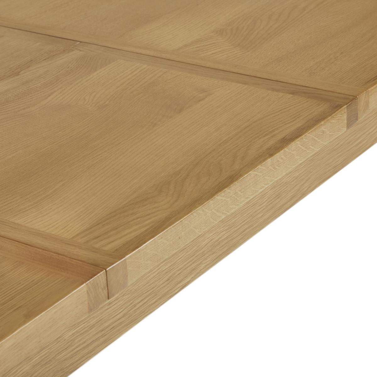 Dunelm Exclusive - Designed and Developed by Dunelm. Made from solid oak and oak veneers, the Sherbourne range is inspired by a clean, simplistic styling. Fashioned with a warm natural colourway, the Sherbourne range offers a hardwearing lacquer finish to bring out the colour variations of real wood veneer. Designed with a thick top, this dining table can easily be extended to accommodate up to eight people. Constructed with an easy pull-out mechanism, this extending dining table features straight and sturdy legs, perfect to match any interior.