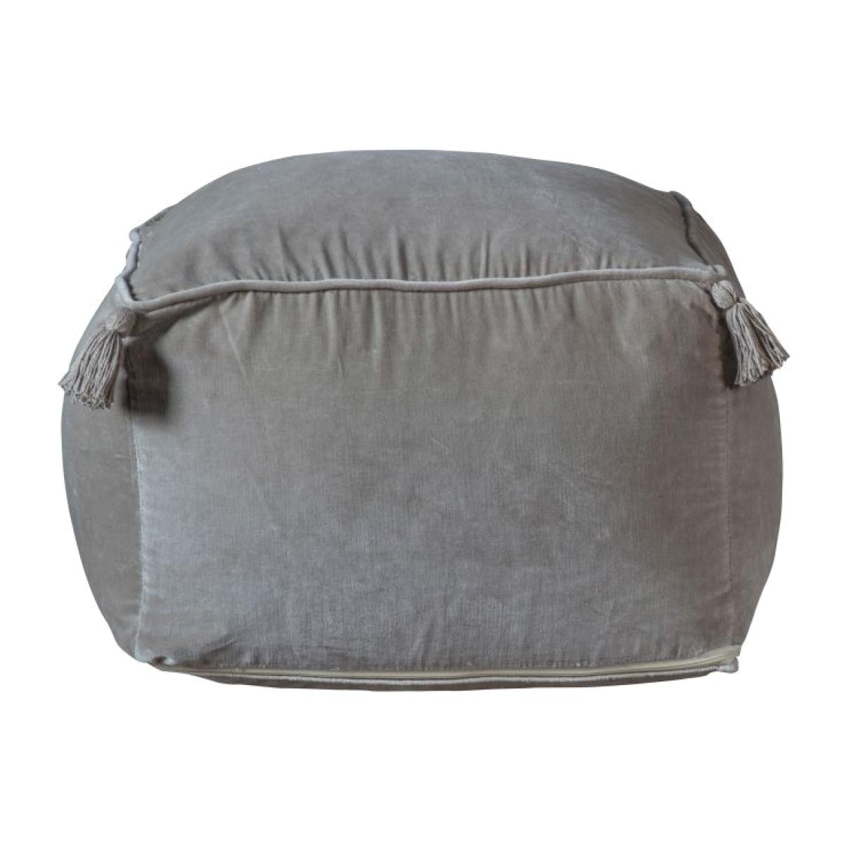 Perfect for perching, this luxurious velvet piped poufs in a square design will add a contemporary touch to any home. Featuring matching grey piping and plump tassels, this generously filled poufs will add opulence to your home. Material: 100% cotton. Colour/Finish: Silver.