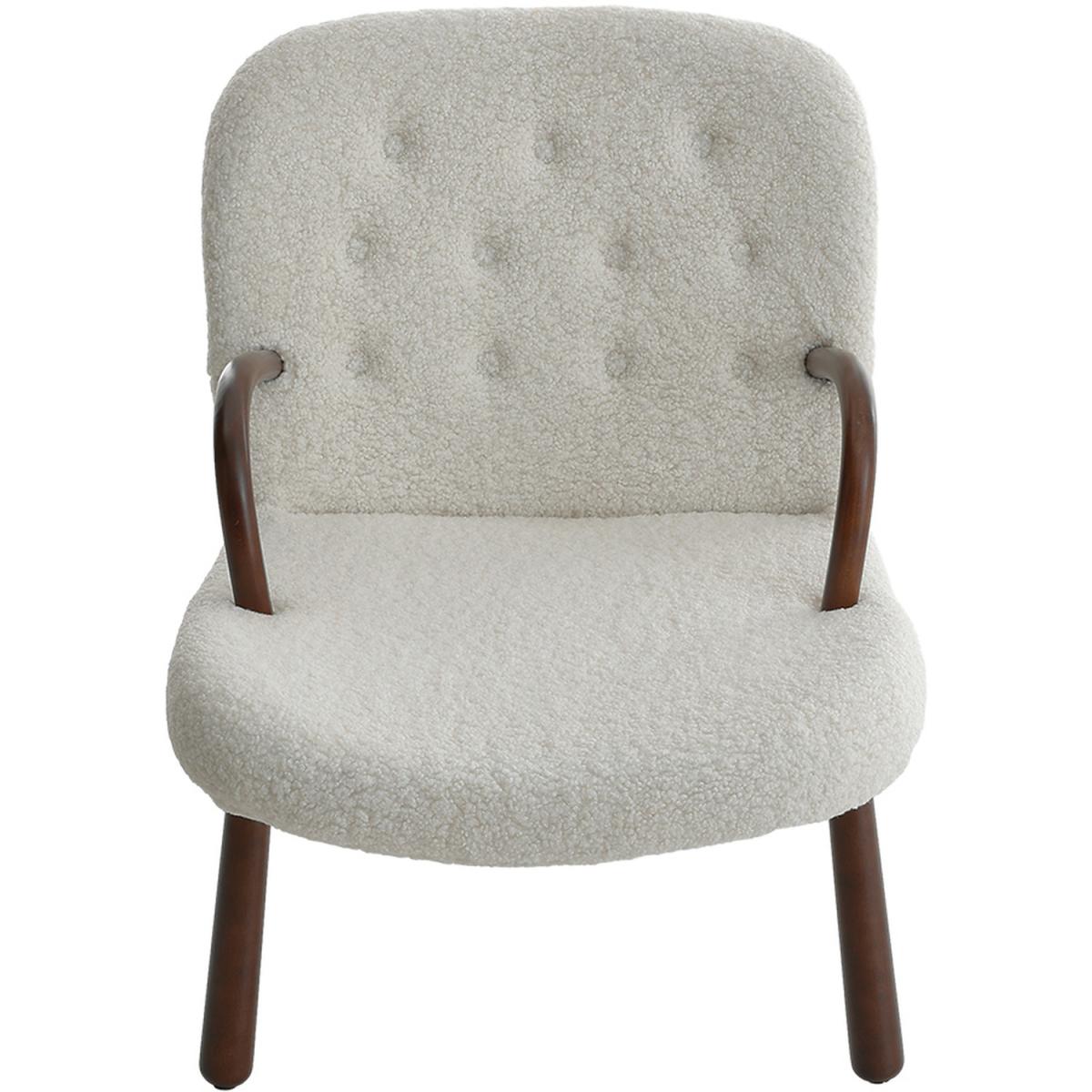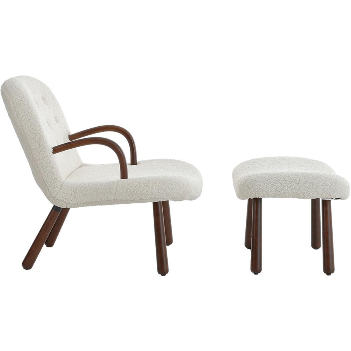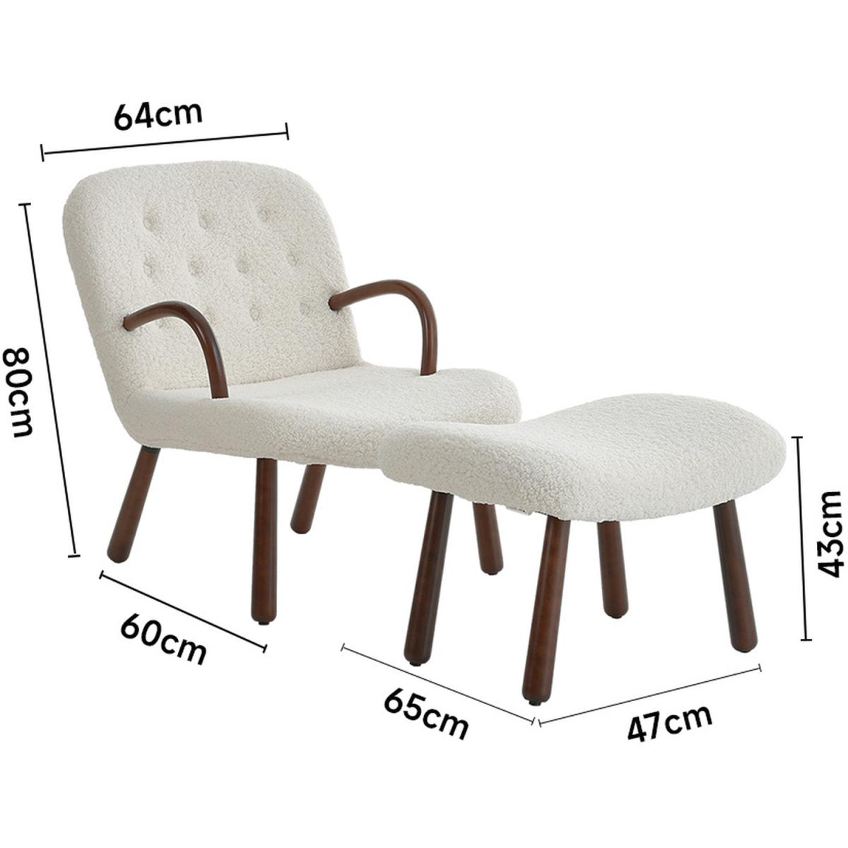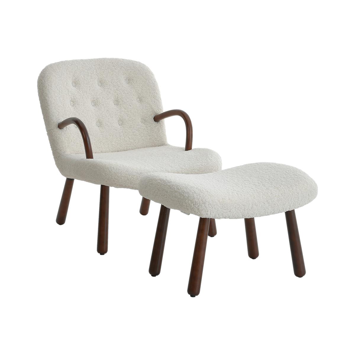 Sherpa Armchair and Footstool Set with Wooden Legs - White