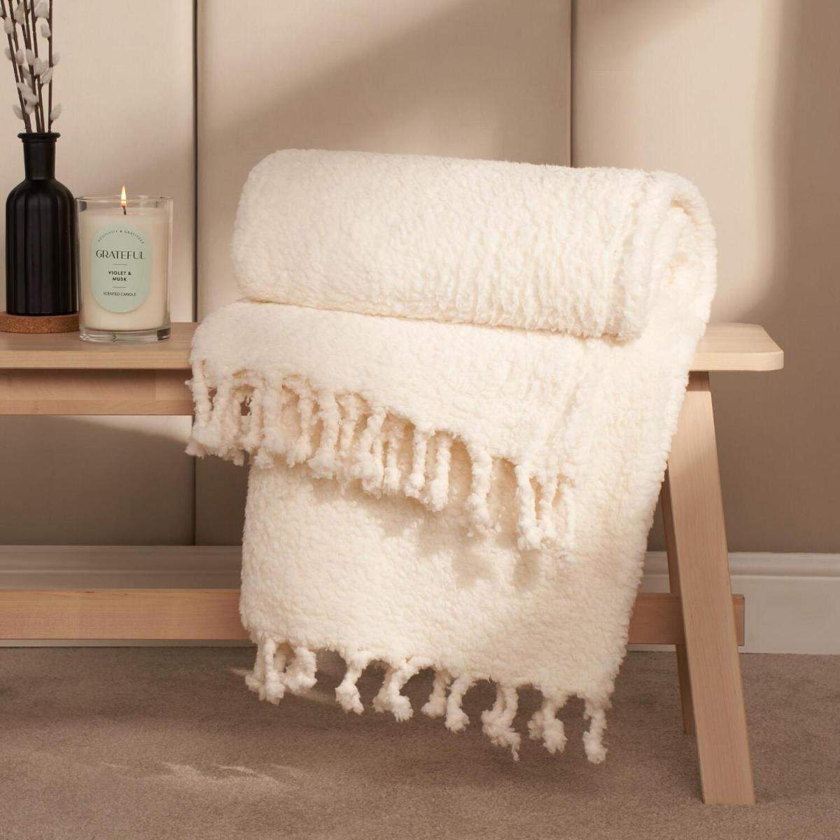 I love this sherp tassel throws for adding both texture and warmth to a variety of interiors. Its cosy, plush feel makes it ideal for living rooms with neutral or monochrome palettes, especially layered over a sofa or armchair to create an inviting, layered look. The charcoal colour offers versatility, working well in modern, minimalist spaces or more eclectic, boho settings. For styling tips, try draping it casually over the arm of a sofa or folding it neatly at the end of the bed for an effortless touch. It also pairs beautifully with layered cushions and other textiles to create a hygge-inspired cosy corner.