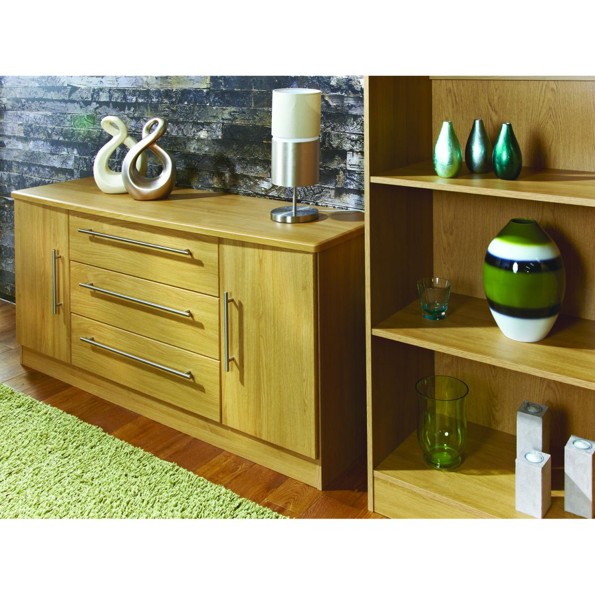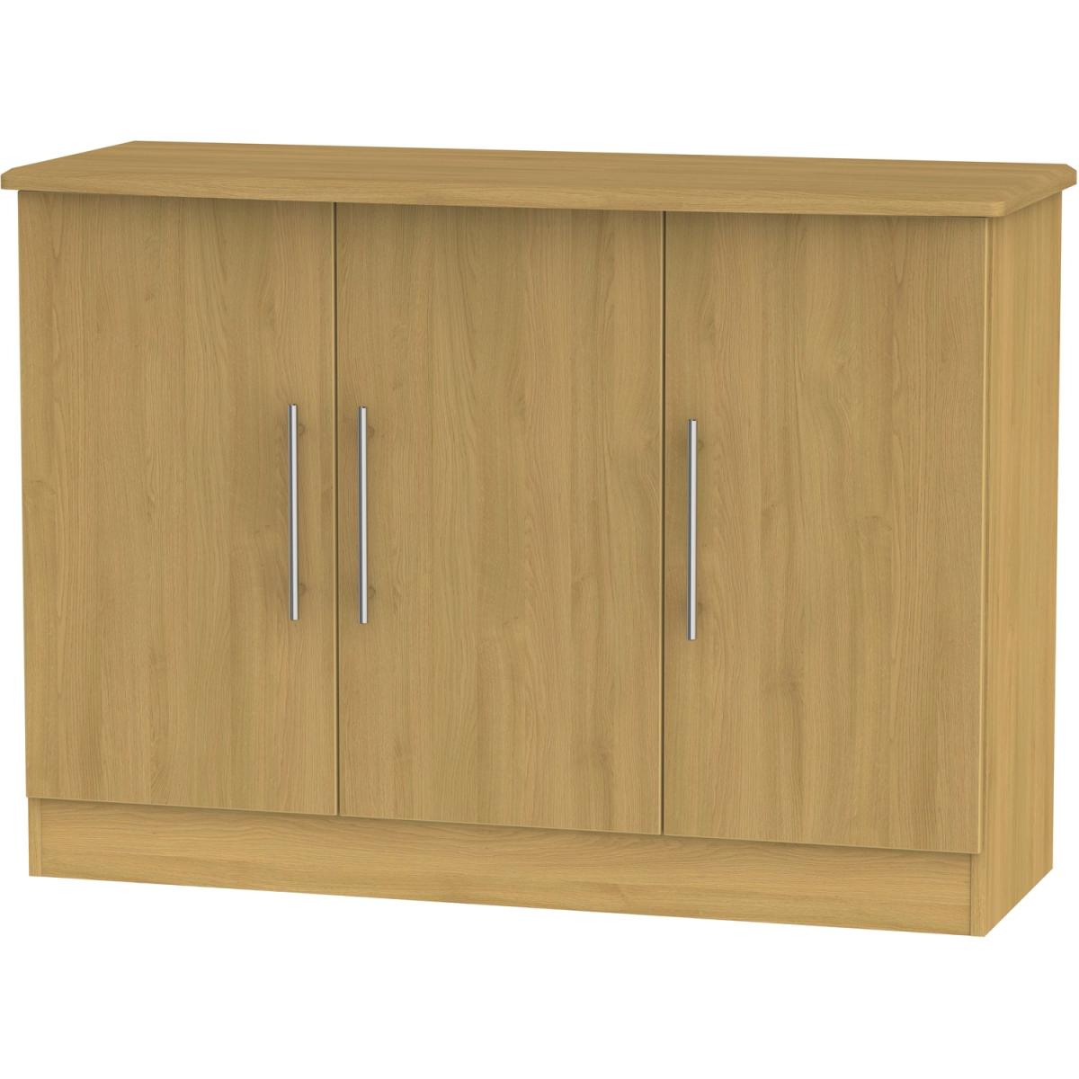 This 3 door wide storage cupboard has internal shelves and is perfect for any living room, dinning room or louge. Could also be used as a TVMedia stand or side board. The elegant, stylish Sherwood range is available in a range of durable scratch resistant natural wood or matt finishes. With metal T-Bar handles on all doors and drawers. All drawers come with long lasting metal drawer runners and a linen effect interior. All our furniture is made in the United Kingdom, to the highest quality. It is delivered direct to your location of choice by one of our two man delivery teams, and come full assembled (although legs may be removed to prevent damage in transit).