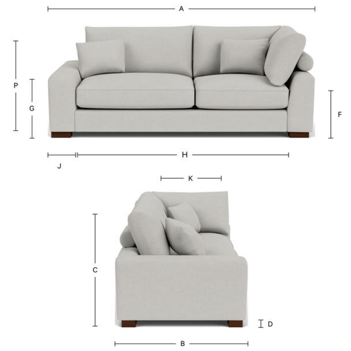 With the Sherwood Grand Corner Unit you can create a large, spacious and sumptuously comfortable modular corner sofa. It comes in a variety of fabrics and colours. The grand corner unit comes complete with 2 x 60 cm feather filled boxed cushions in the same fabric as the main body of the sofa. Additional scatter cushions can be added with a variety of fabrics to choose from to complement your sofa. External (cm): - Width (A) = 231 - Depth (B) = 105 - Height (C) = 83 Seat (cm): - Width (H) = 191 - Depth (K) = 65 - Height (F) = 45 Arm (cm): - Width (J) = 25 - Height (G) = 58 Legs (cm): - Height (D) = 8 Frame Height (without Feet): - Height (P) = 53