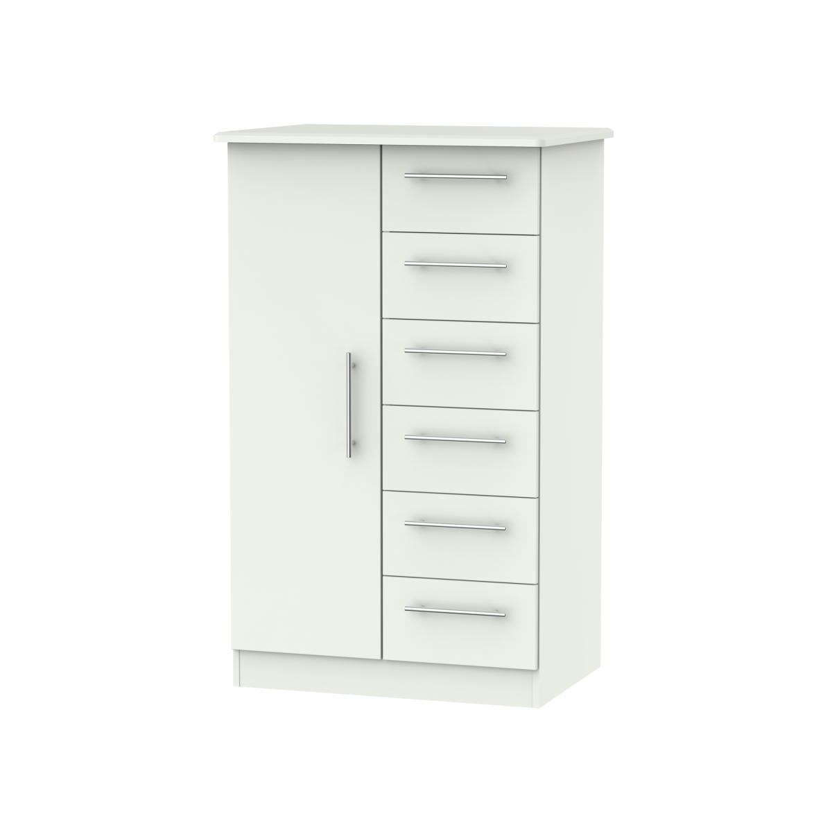 This compact midi Wardrobe is the perfect size for any child's bedroom. The combination of 5 good sized drawers and a wardrobe compartment make this the perfect solution for storing children's clothes or toys. The elegant, stylish Sherwood range is available in a range of durable scratch resistant natural wood or matt finishes. With metal T-Bar handles on all doors and drawers. All drawers come with long lasting metal drawer runners and a linen effect interior. All our furniture is made in the United Kingdom, to the highest quality. It is delivered direct to your location of choice by one of our two man delivery teams, and comes fully assembled (although legs may be removed to prevent damage in transit).