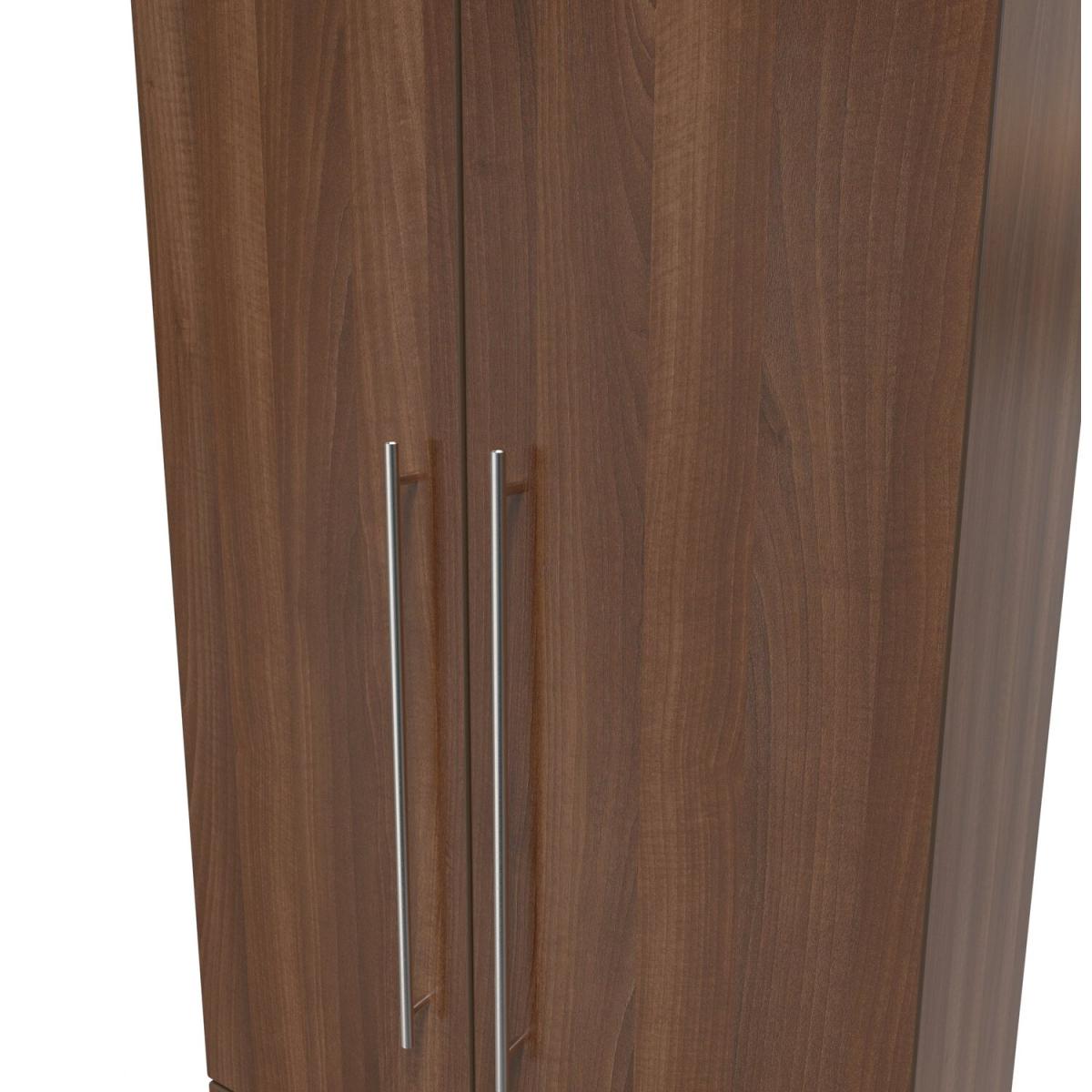 This full height double door wardrobe is perfect for any bedroom. Features the added practicality of 2 full width drawers. The elegant, stylish Sherwood range is available in a range of durable scratch resistant natural wood or matt finishes. With metal T-Bar handles on all doors and drawers. All drawers come with long lasting metal drawer runners and a linen effect interior. All our furniture is made in the United Kingdom, to the highest quality. It is delivered direct to your location of choice by one of our two man delivery teams, and comes fully assembled (although legs may be removed to prevent damage in transit).