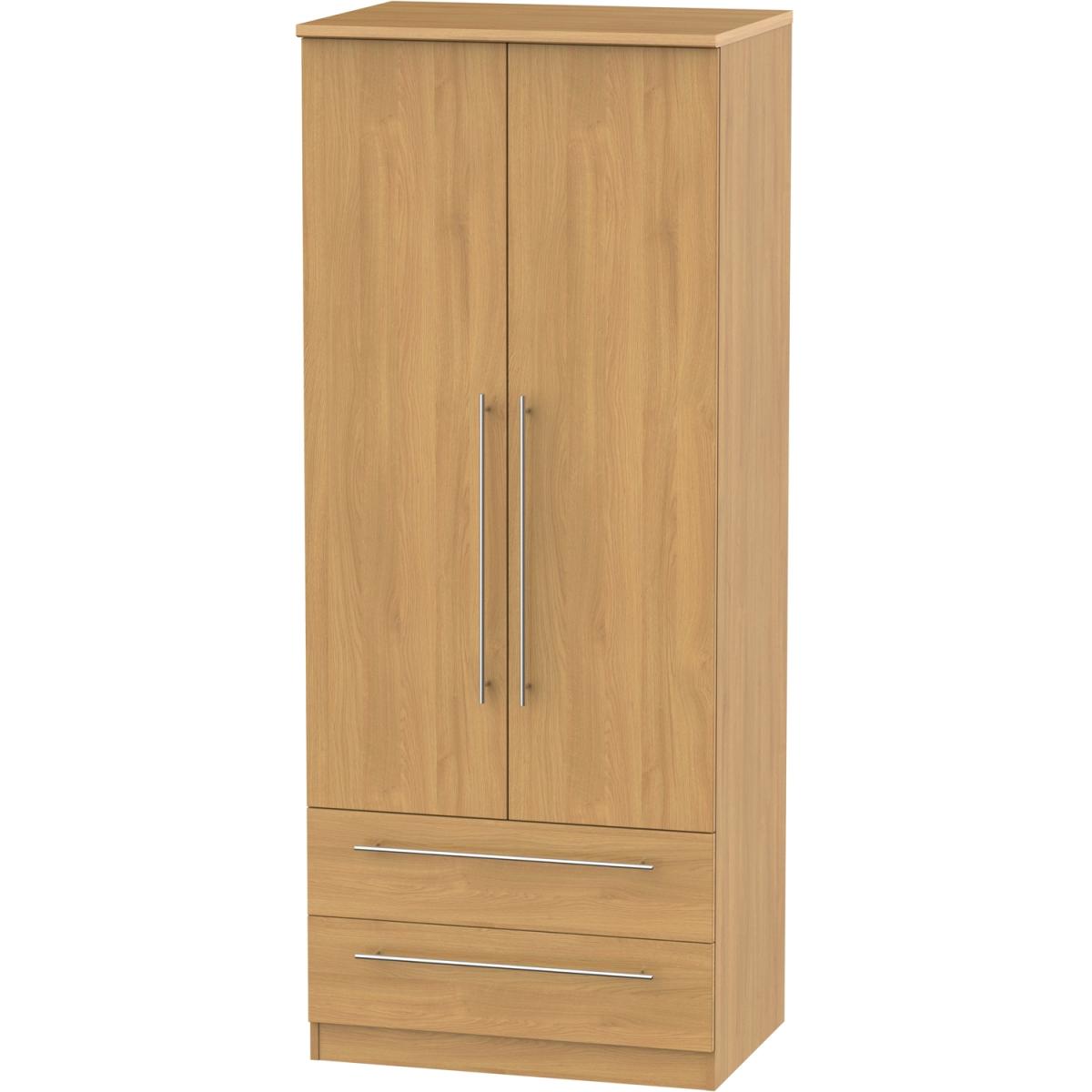 This full height double door wardrobe is perfect for any bedroom. Features the added practicality of 2 full width drawers. The elegant, stylish Sherwood range is available in a range of durable scratch resistant natural wood or matt finishes. With metal T-Bar handles on all doors and drawers. All drawers come with long lasting metal drawer runners and a linen effect interior. All our furniture is made in the United Kingdom, to the highest quality. It is delivered direct to your location of choice by one of our two man delivery teams, and come full assembled (although legs may be removed to prevent damage in transit).