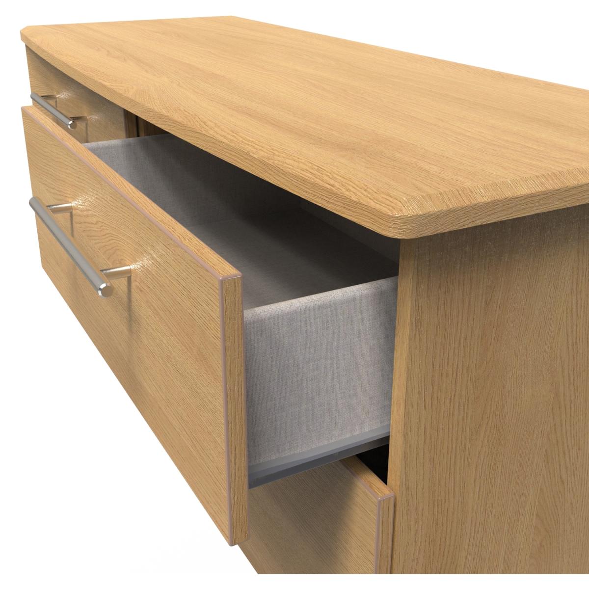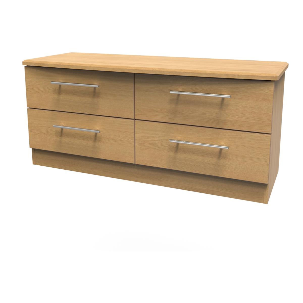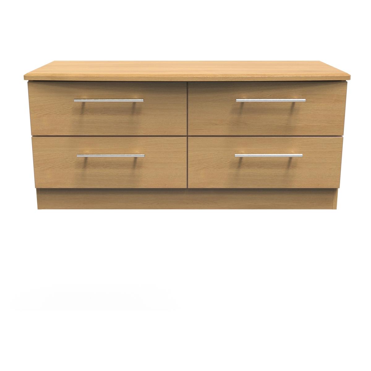 A large 4 drawer bed box. A Perfect storage solution for any room (not just the end of your bed). Could also be used as a low level TVMedia stand. The elegant, stylish Sherwood range is available in a range of durable scratch resistant natural wood or matt finishes. With metal T-Bar handles on all doors and drawers. All drawers come with long lasting metal drawer runners and a linen effect interior. All our furniture is made in the United Kingdom, to the highest quality. It is delivered direct to your location of choice by one of our two man delivery teams, and come full assembled (although legs may be removed to prevent damage in transit).