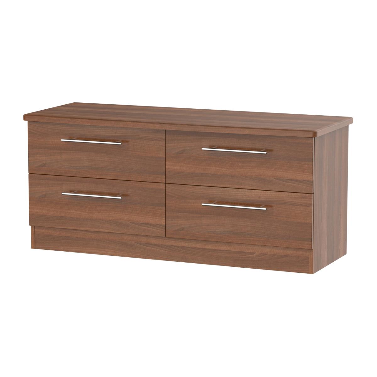 A large 4 drawer bed box. A Perfect storage solution for any room (not just the end of your bed). Could also be used as a low level TVMedia stand. The elegant, stylish Sherwood range is available in a range of durable scratch resistant natural wood or matt finishes. With metal T-Bar handles on all doors and drawers. All drawers come with long lasting metal drawer runners and a linen effect interior. All our furniture is made in the United Kingdom, to the highest quality. It is delivered direct to your location of choice by one of our two man delivery teams, and comes fully assembled (although legs may be removed to prevent damage in transit).