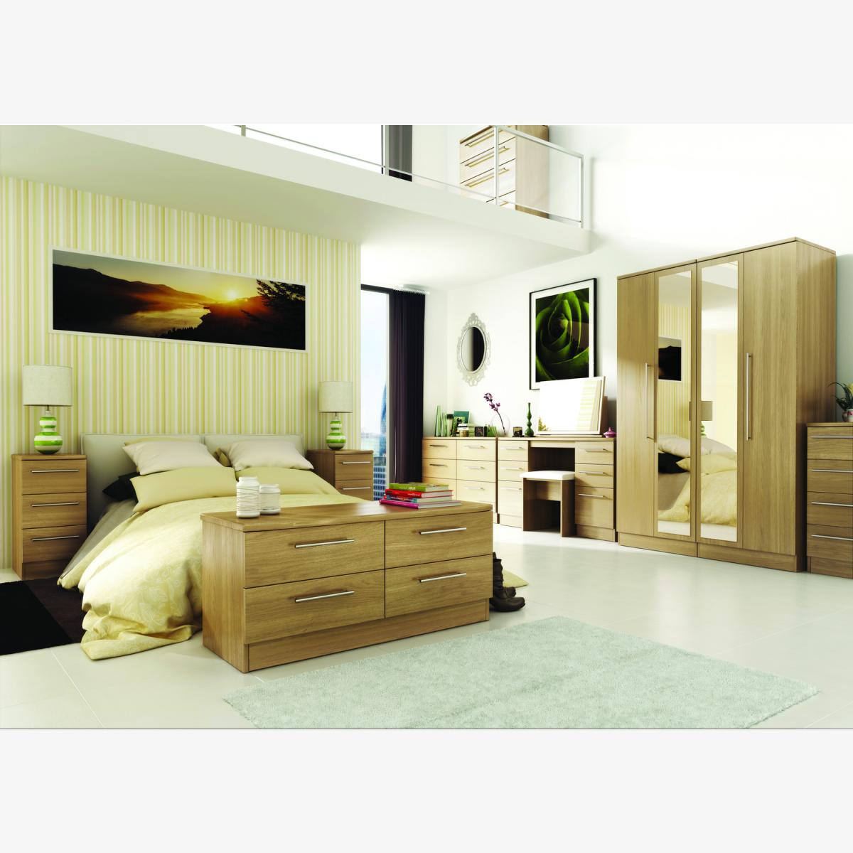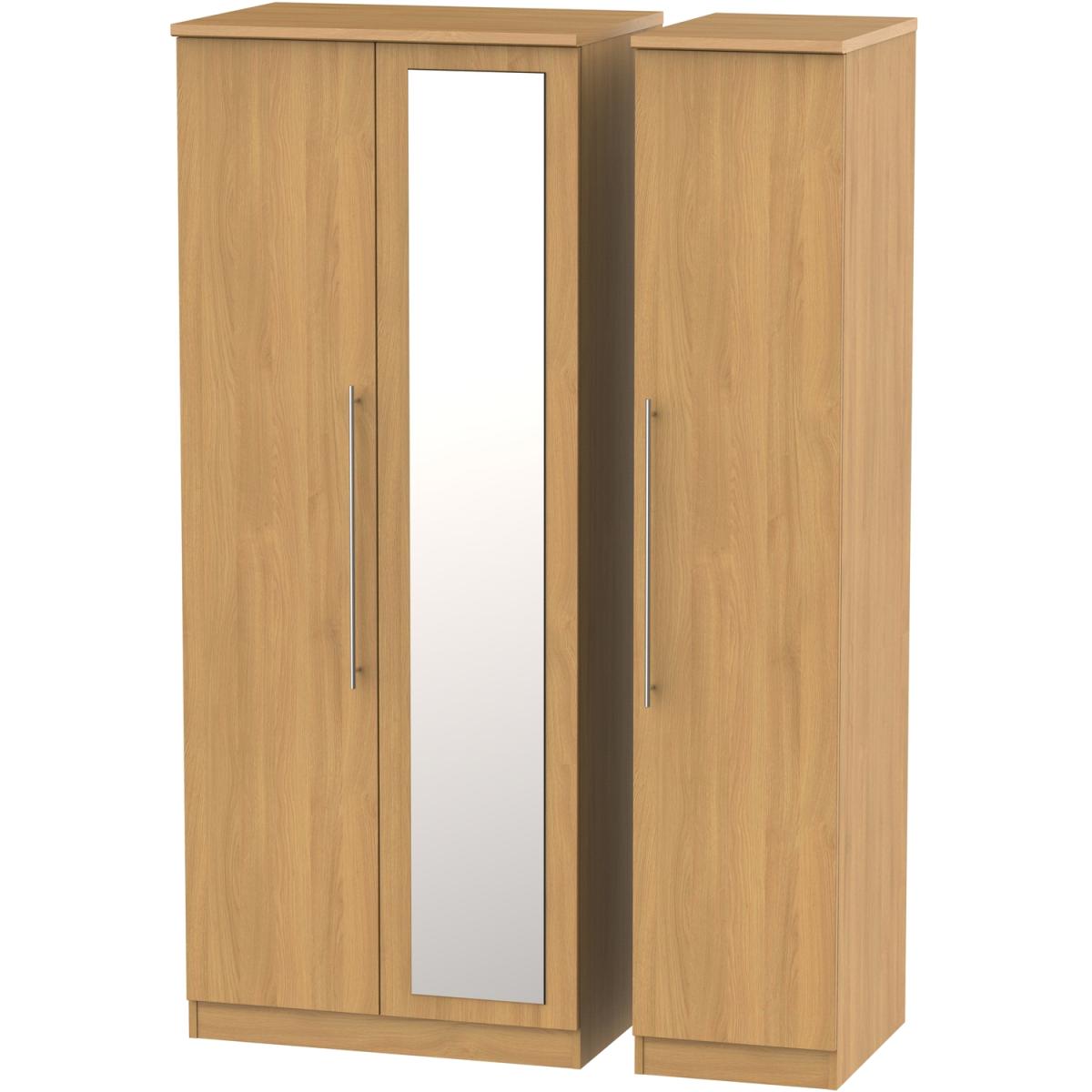 This full height triple 3 door wardrobe is perfect for any bedroom when a normal wardrobe is just not large enough. Also features a full height single mirrored door. The elegant, stylish Sherwood range is available in a range of durable scratch resistant natural wood or matt finishes. With metal T-Bar handles on all doors and drawers. All drawers come with long lasting metal drawer runners and a linen effect interior. All our furniture is made in the United Kingdom, to the highest quality. It is delivered direct to your location of choice by one of our two man delivery teams, and come full assembled (although legs may be removed to prevent damage in transit).