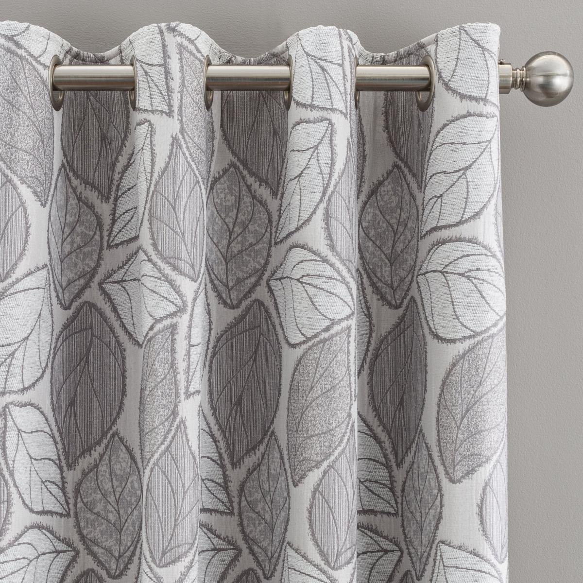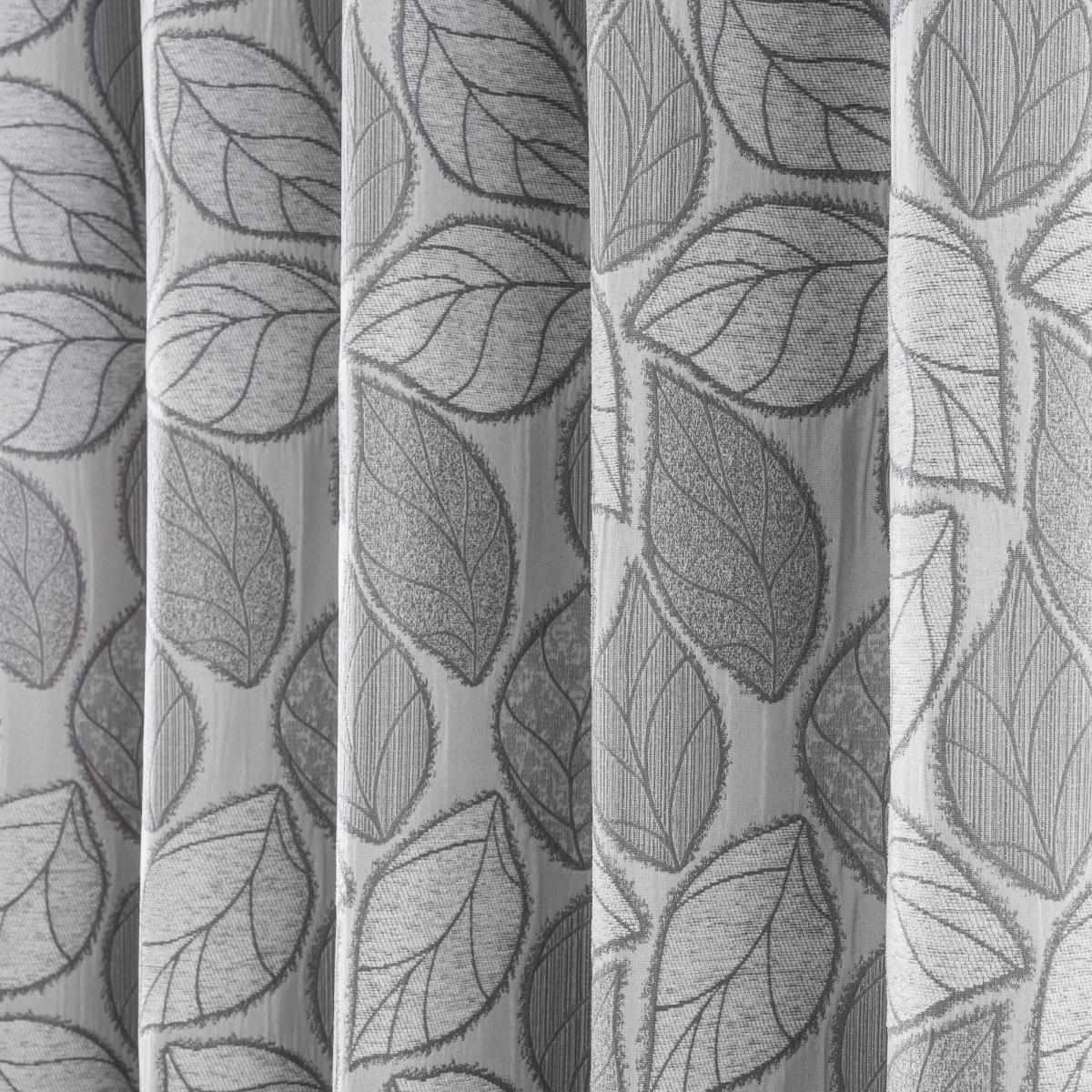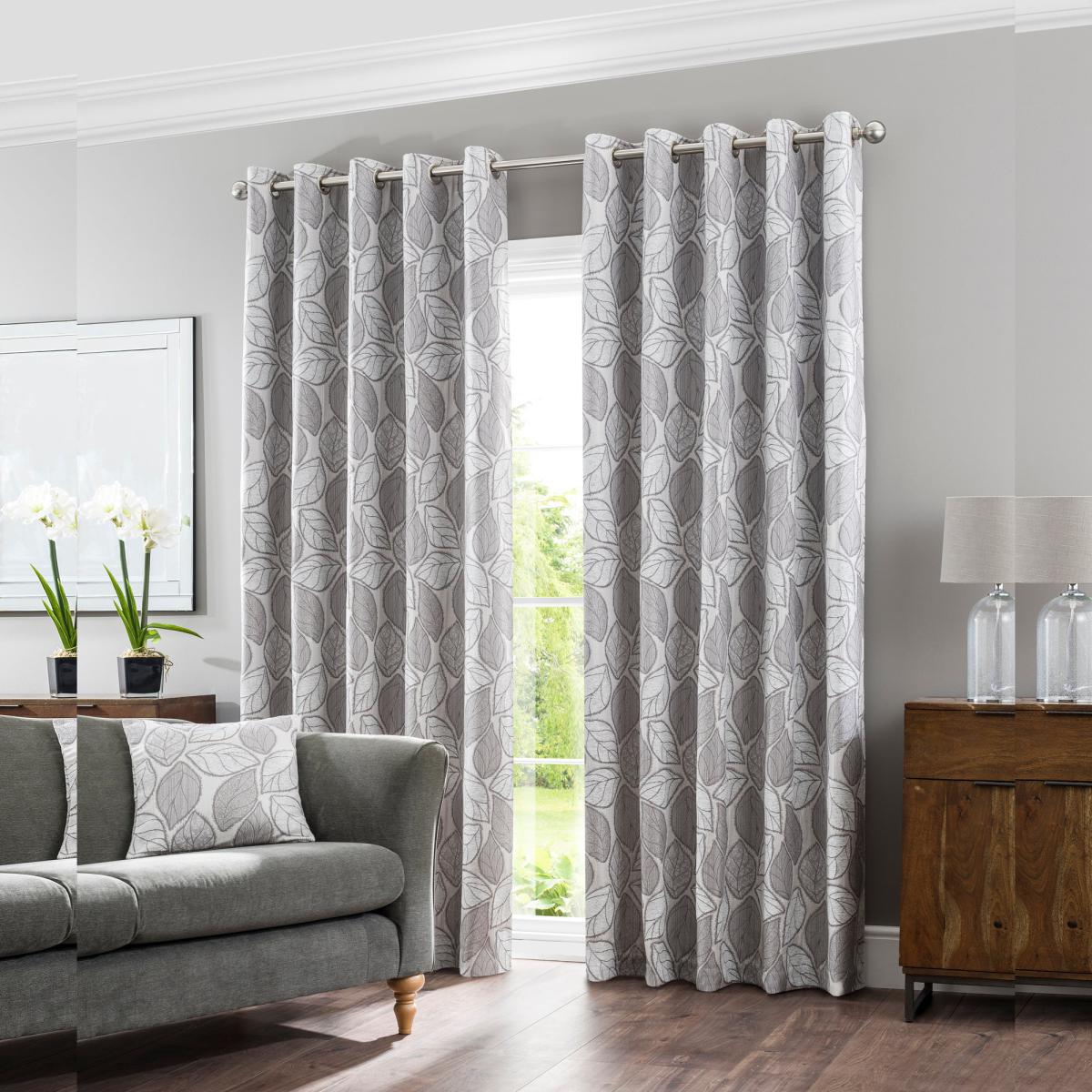 Finished in a modern silver colourway and complete with a stylish eyelet heading, this pair of curtains are suitable to compliment all types of decor and have been decorated with a leaf jacquard pattern. Fully lined to help block out excess light whilst helping to retain heat, our Sherwood curtains are available in a wide range of widths and drops for added convenience. Please note: these curtains are sold as a pair. These curtains are now available with a thermal blackout lining for improved insulation, privacy and light control. Professional cleaning in Hydrocarbon or equivalent reccomended.