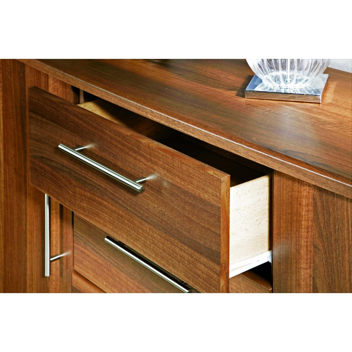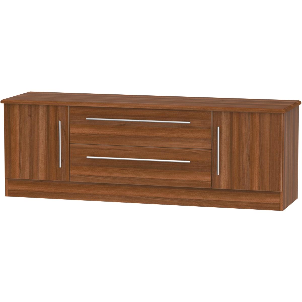 This wide low level TV Corner unit features 2 storage cupboards as well as 2 central drawers and will support a flat screen TV of up to 65". The elegant, stylish Sherwood range is available in a range of durable scratch resistant natural wood or matt finishes. With metal T-Bar handles on all doors and drawers. All drawers come with long lasting metal drawer runners and a linen effect interior. All our furniture is made in the United Kingdom, to the highest quality. It is delivered direct to your location of choice by one of our two man delivery teams, and come full assembled (although legs may be removed to prevent damage in transit).