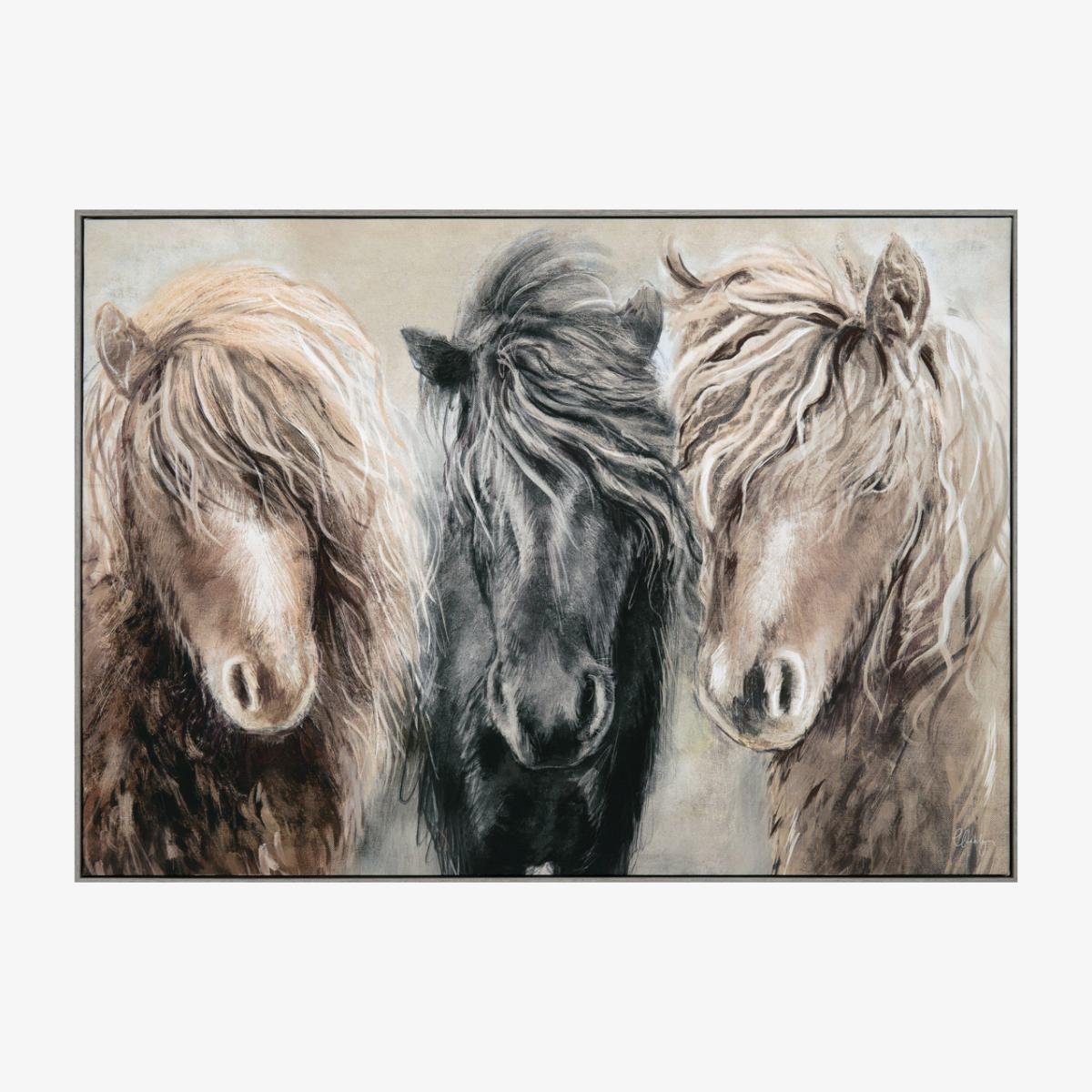 Adorn your walls with the gentle spirit of Shetland ponies. The carefully chosen muted colours not only highlight the ponies' distinctive features but also evoke a feeling of serenity.