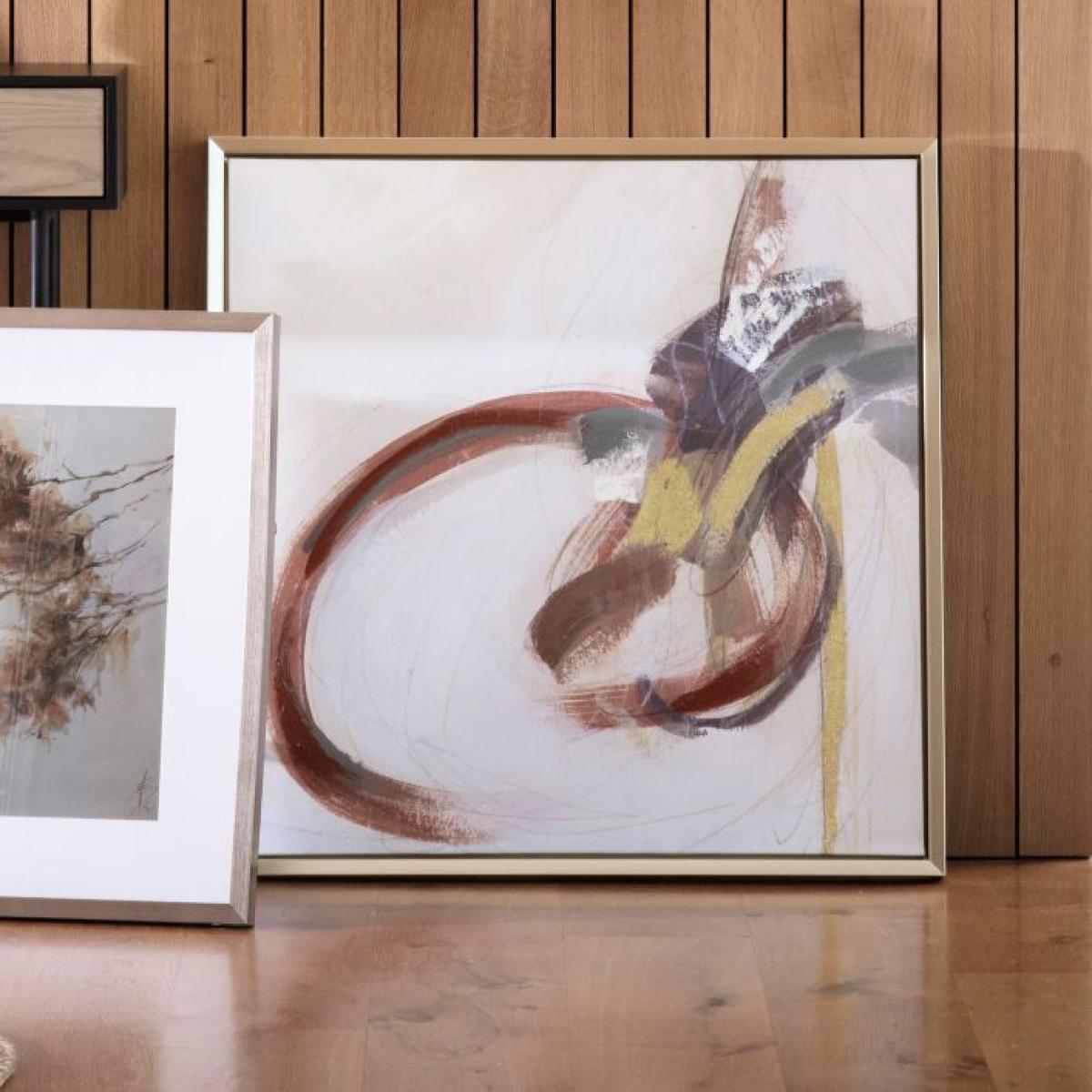 Abstract canvas, perfect for adding the finishing touch to your living space. Orientation: Square. Fixing Type: D-Ring. Framed:Yes. Colour: Gold.
