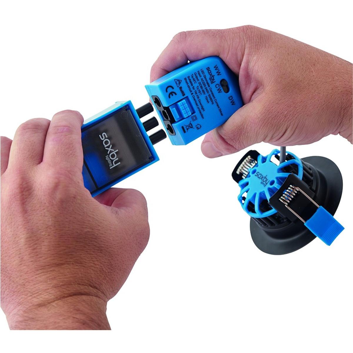 New signature downlight. This fitting comes with a 2-way "Plug and Play" DC connector which allows users to loop in and out. The DC connector allows for easy removal of the fitting during wiring, painting and decorating. The DC connector has a simple 3-way switch which allows users to choose between 3000. K, 4200. K or 6000. K. Other features include the option to be covered with insulation, fits into shallow ceiling voids, IP65-rated, and fully fire-rated for 30, 60 and 90-minute ceilings. The has two bezel colour options, Satin and Chrome, and these can be easily removed or added by twisting on and off.