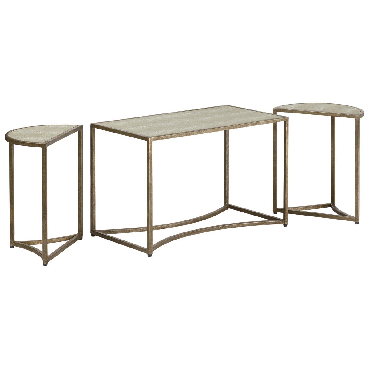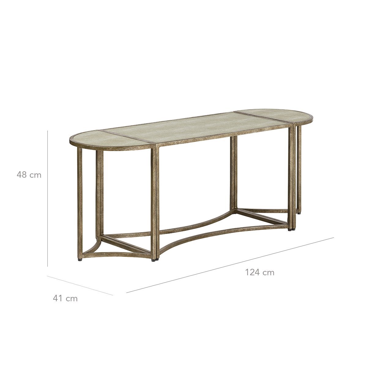 If you like geometric interiors, you’ll love the Shikotan Coffee Table. Like a puzzle, its design features several connecting shapes – it could well be the missing piece your home needs. It’s finished with our signature taupe faux shagreen, offset with an iron border in an antique bronze-effect, which complements a wide array of furniture and accessories.