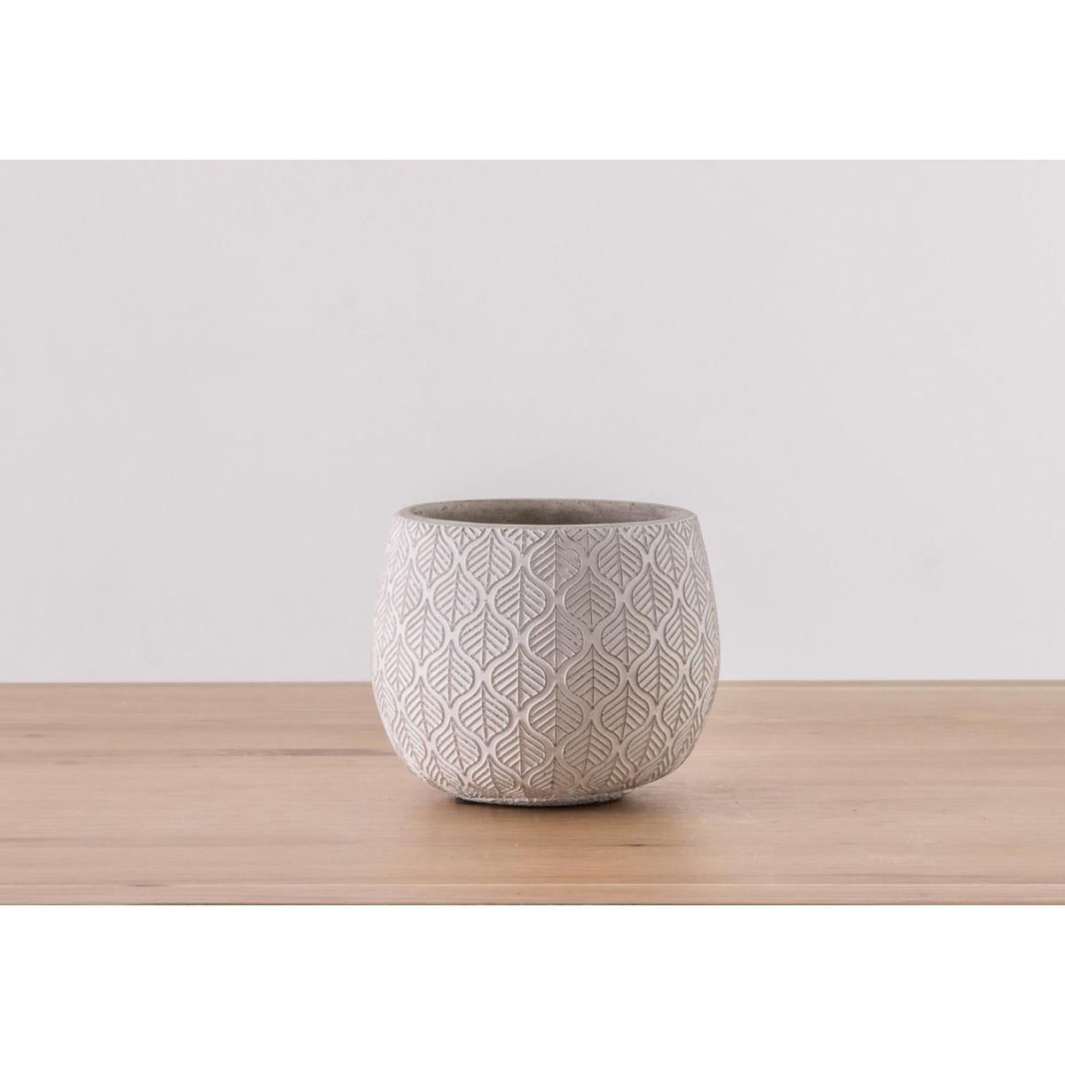 The Shiloh Leaf Pattern Cement Pot will add a touch of class to your inside or outside area. With an elegant repeating geometric leaf pattern running all the way around offering a subtle tonal contrast to the pale grey cement base, this pot would look simply gorgeous teamed with a specimen plant.