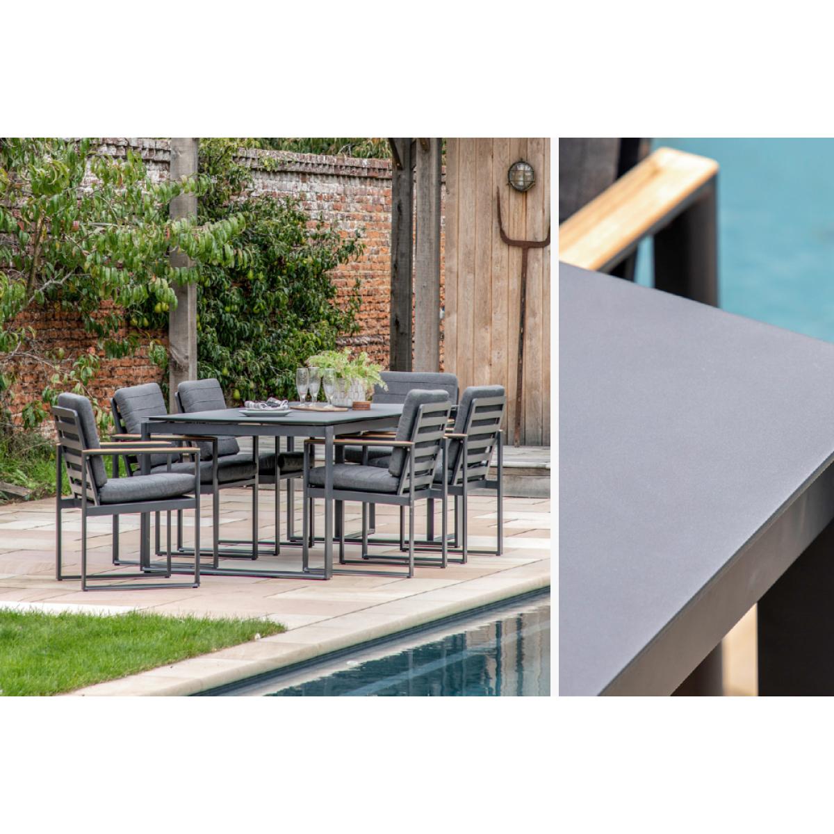 Gather the gang and throw a little outdoor shindig. Simply stylish, the Shindig table grey metal frame easily adapts to your needs, thanks to the extending section you can gather 8-10 people around the table. Matches perfectly with the coordinating chairs.