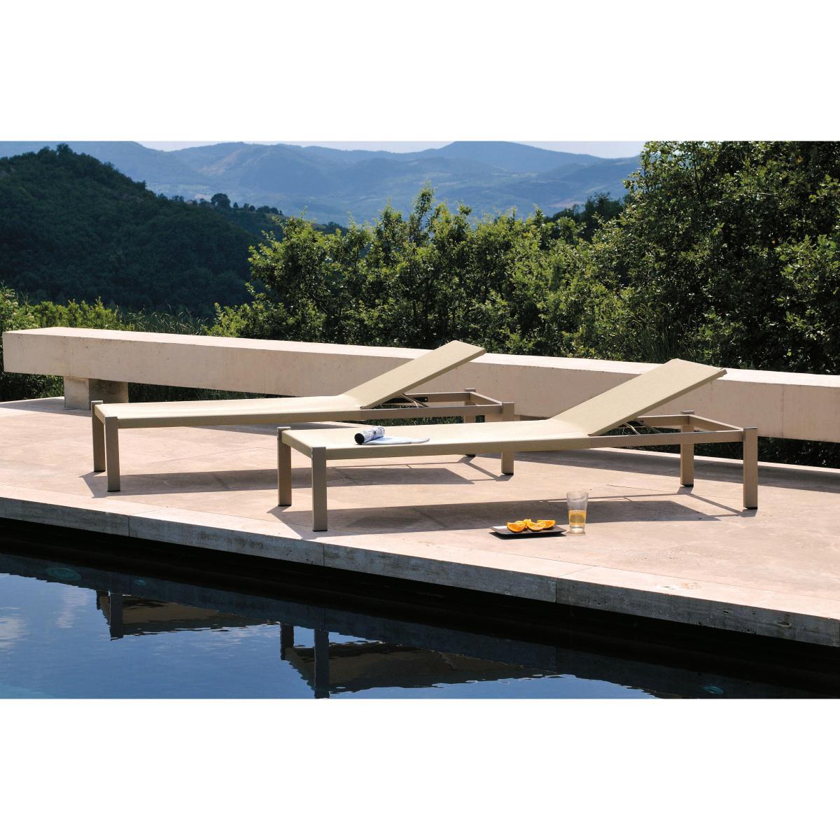 It is a simple, flexible sun lounger with a steel structure and and waterproof Tex fabric, which makes it particularly suitable for the seaside.