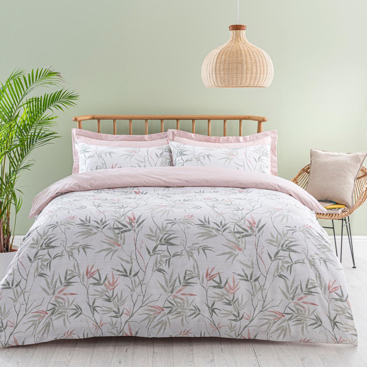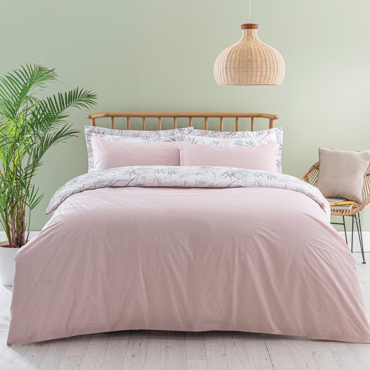 Shino Floral Reversible Duvet Cover and Pillowcase Set Pink/Grey
