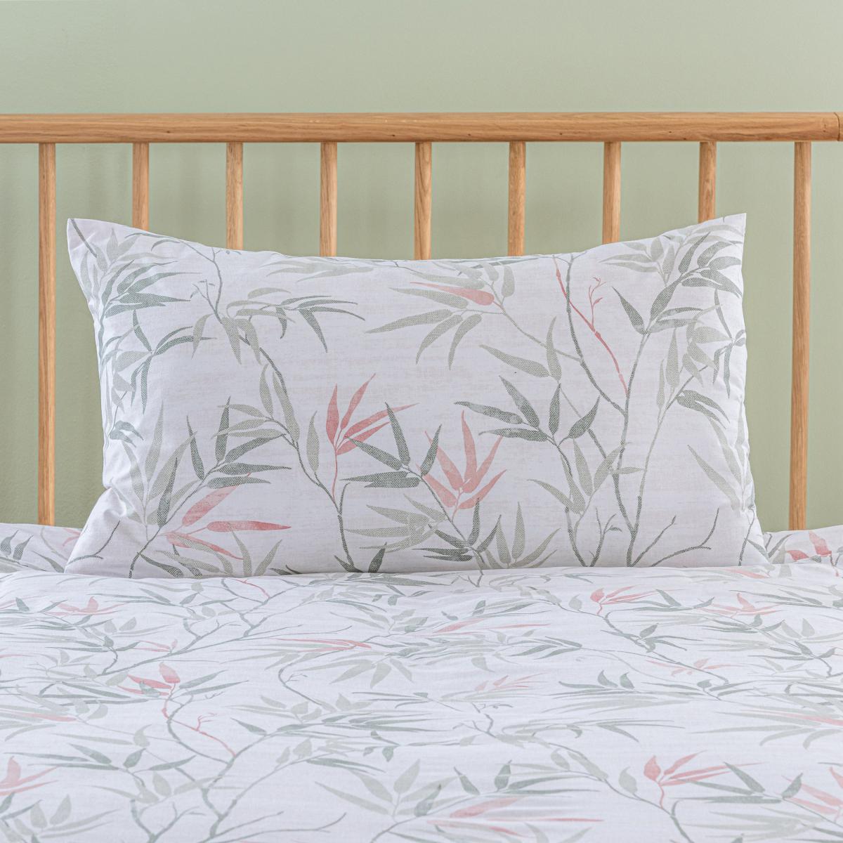 Featuring a stunning leaf design in soft shades of green and terracotta, Shino lends an oriental feel to your bedroom. This duvet cover set is crafted from a practical and durable blend of polyester and cotton or 100% cotton requiring minimal ironing for easy care. Available in all sizes, the Shino duvet cover set comes complete with pillowcase(s) and matching oxford pillowcases are available separately.