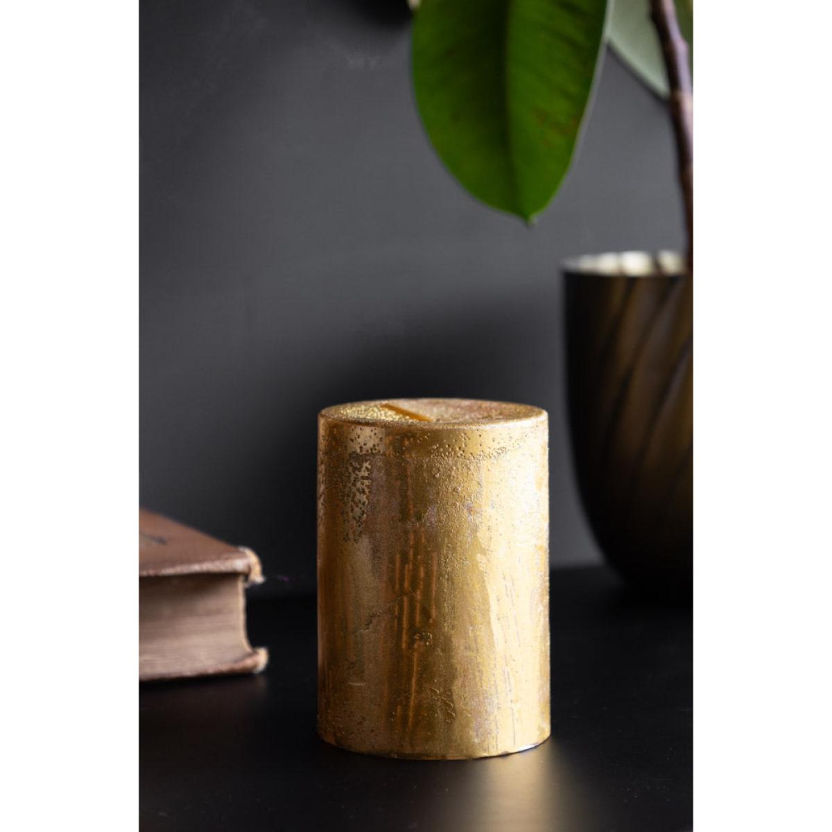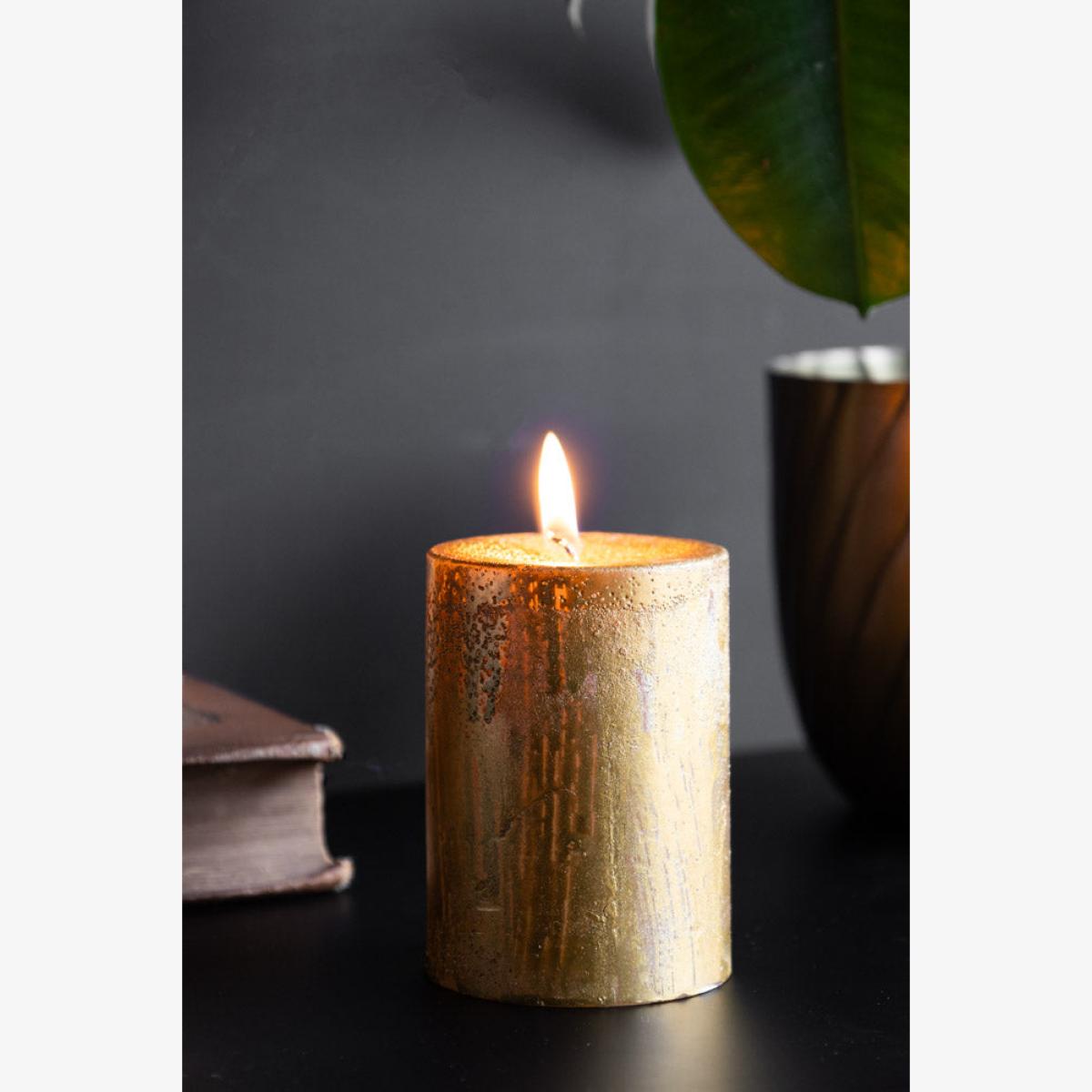 <!--td --> A brilliant way to create a warm and inviting atmosphere in your home is to layer light - and candles are integral to the process! Table and floor lamps create the foundation of your lighting scheme, with the finishing touches being, of course, an array of candles. Ideally, curate a collection of candles in different shapes, styles and sizes to create visual interest and add tiers of light. Team RSG likes to mix pillar candles with votive and tealights and burn, baby, burn! Our Shiny Gold Pillar Candle makes a fabulous addition to your collection, especially as the metallic effect makes this extra glamourous, and adds a fabulous warm hue. Perfect for all seasons, whether you’re entertaining indoors or out, this candle works just as well on a festive tablescape as it does illuminating a late-night garden party. The perfect way to add a touch of RSG magic.- Shiny Gold Pillar Candle - Short - Material: Wax, paraffin - Measures: H9.5cm x D6.7cm - SAFETY NOTE:Never leave a burning candle unattended