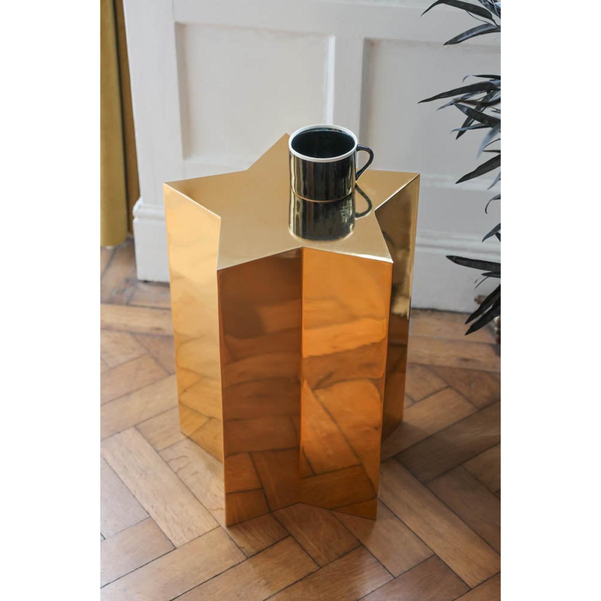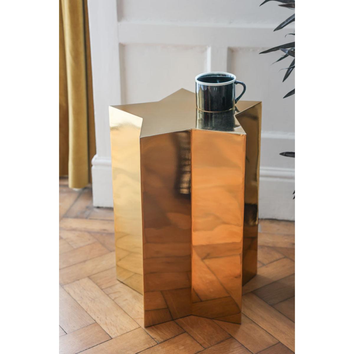 Get ready to elevate your space to interstellar levels with our Shiny Gold Star Side Table! This isn't just any old table – it's a star in its own right, both literally and figuratively. Crafted to shine bright like a diamond, this table is coated in a dazzling gold finish that's guaranteed to steal the spotlight in any room. And did we mention it's in the shape of a star? Talk about making a statement! Whether you're a fan of all things celestial or just looking to add a touch of rock'n'roll glam to your space, this table is destined to be an instant bestseller. It's like having your own little piece of stardust right in your living room! We'd recommend investing in Leopard Print Coasters or equivalent to protect the table from ring marks. So go ahead, let your space shine with the Shiny Gold Star Side Table. Trust us, it's the kind of furniture that's bound to make your guests starry-eyed.