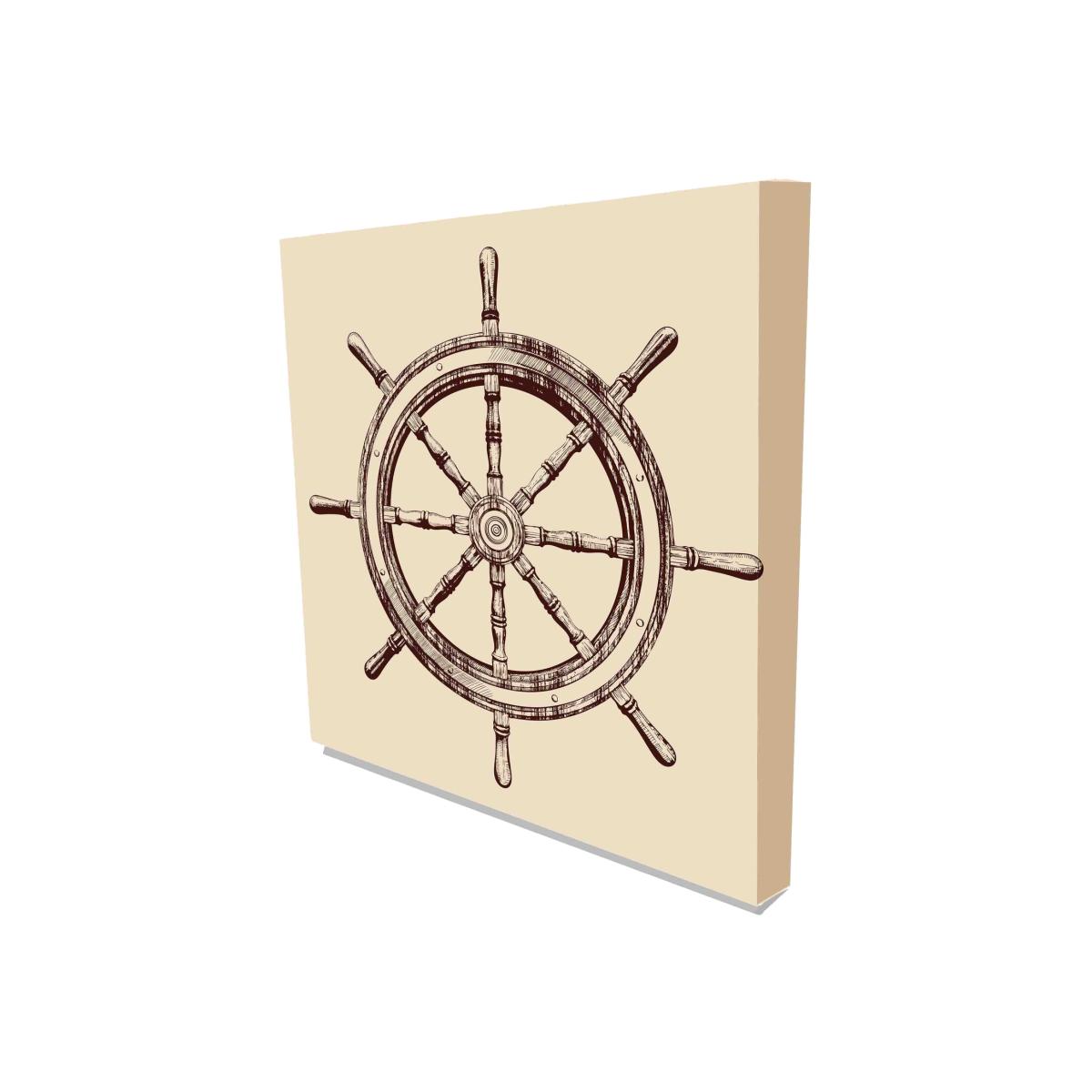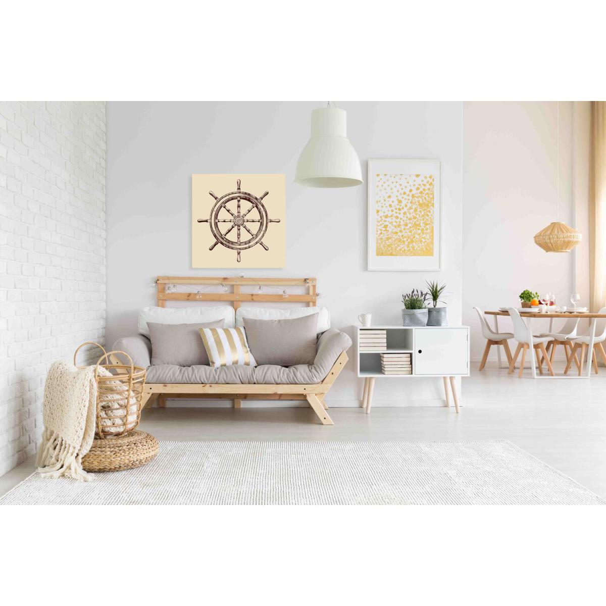 Ship Steering Wheel - Graphic Art Print on Canvas - Brown / 114cm