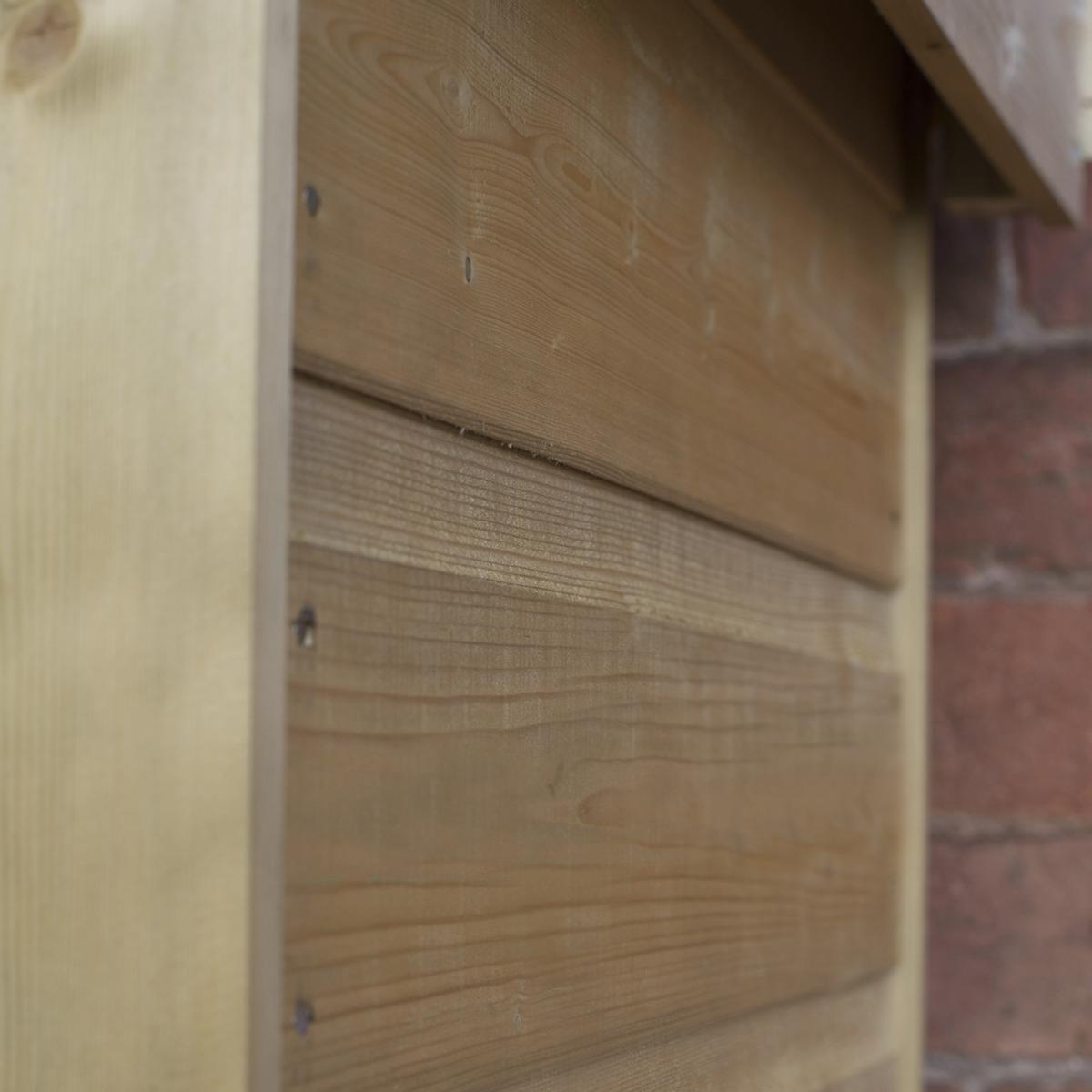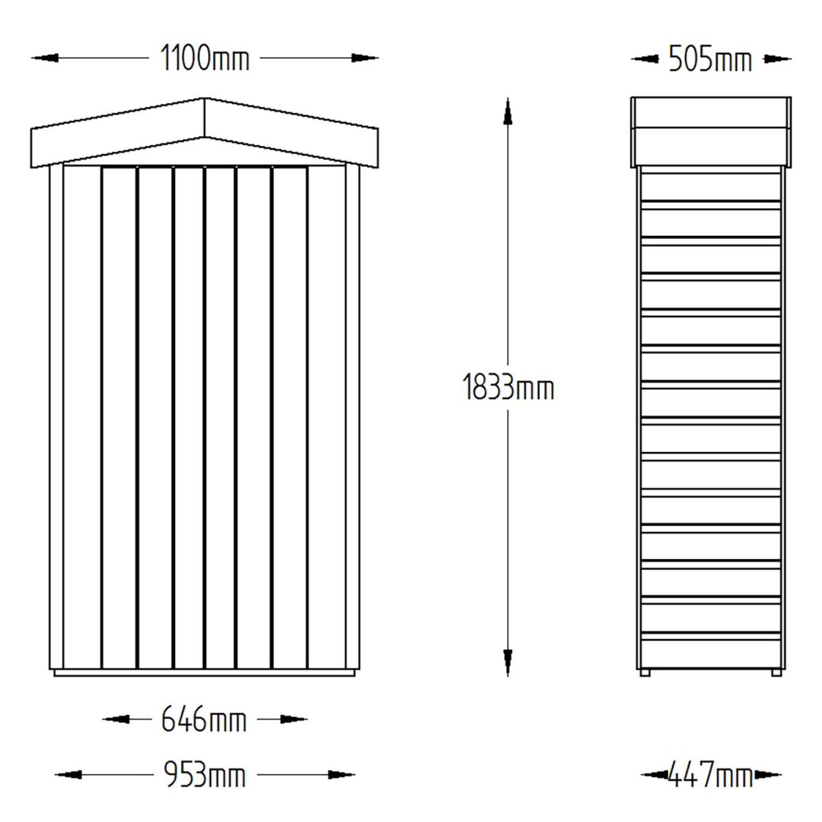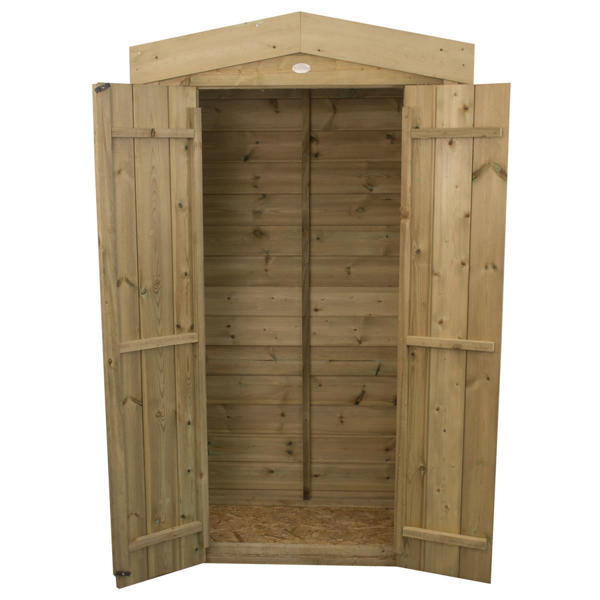 The Shiplap Tall Garden Store is an attractive and robust garden store ideal for positioning against a wall or fence, helping you save on space while keeping your garden neat and tidy. Standing at just under six foot, its tall design makes this store ideal for a wide array of outdoor equipment such as long handled gardening tools, children's toys or folding furniture. Manufactured using smooth-planed, tight fitting, Shiplap Tongue & Groove boards, along with a high quality mineral felt roof, this store is weather-tight and will keep your possessions dry no matter the weather. All timber has been pressure treated to ensure rot resistance, adding another layer of preservation. The double doors can be closed with the supplied turn-buttons and plate hasp and staple latch and secured with a padlock. This store is available with either a decorative apex roof or a neat and tidy pent roof.