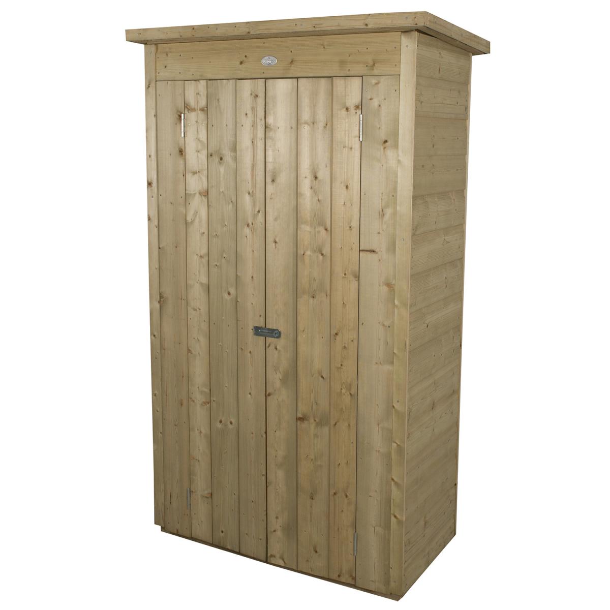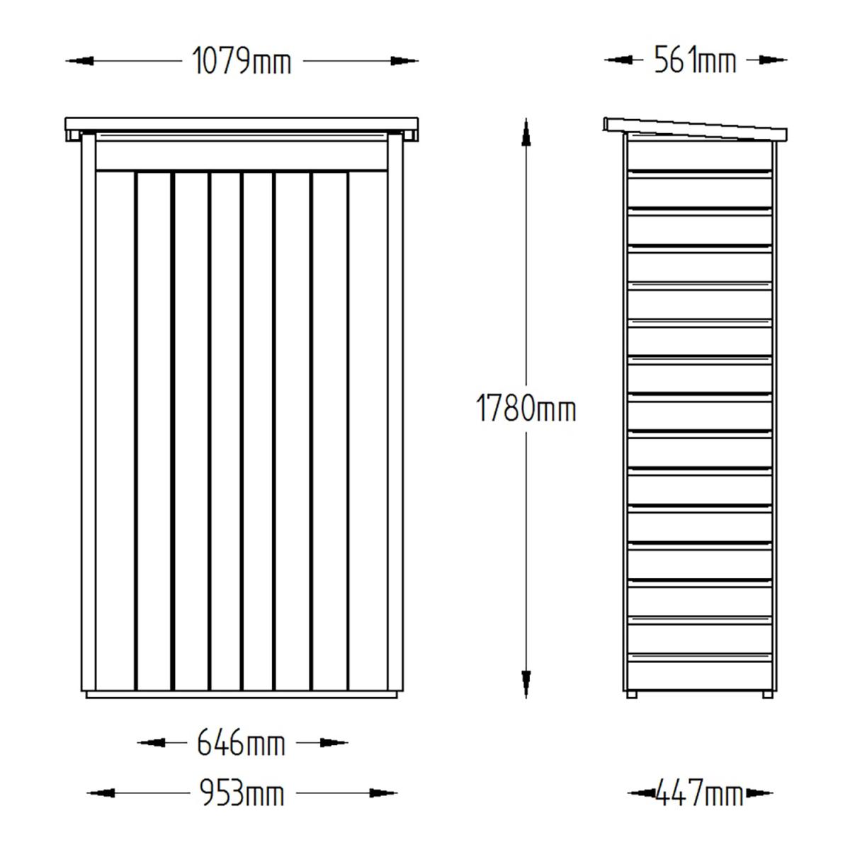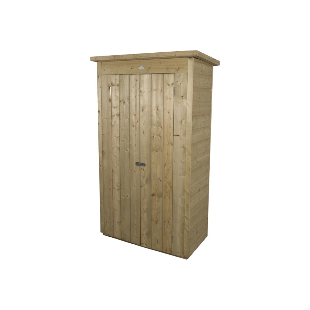 The Shiplap Tall Garden Store is an attractive and robust garden store ideal for positioning against a wall or fence, helping you save on space while keeping your garden neat and tidy. Standing at just under six foot, its tall design makes this store ideal for a wide array of outdoor equipment such as long handled gardening tools, children's toys or folding furniture. Manufactured using smooth-planed, tight fitting, Shiplap Tongue & Groove boards, along with a high quality mineral felt roof, this store is weather-tight and will keep your possessions dry no matter the weather. All timber has been pressure treated to ensure rot resistance, adding another layer of preservation. The double doors can be closed with the supplied turn-buttons and plate hasp and staple latch and secured with a padlock. This store is available with either a decorative apex roof or a neat and tidy pent roof.