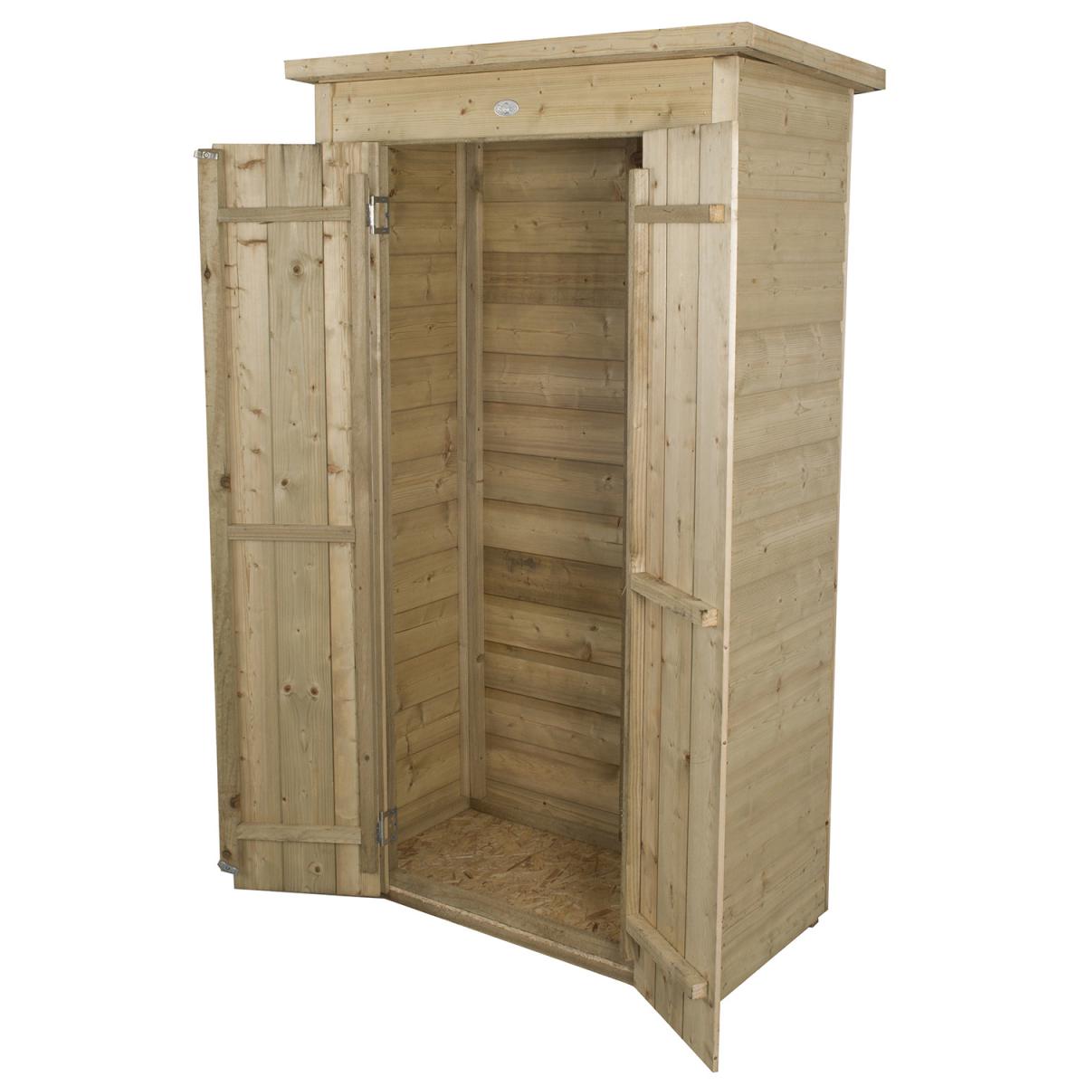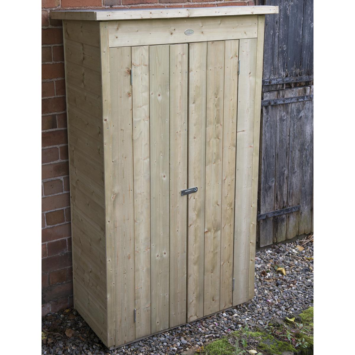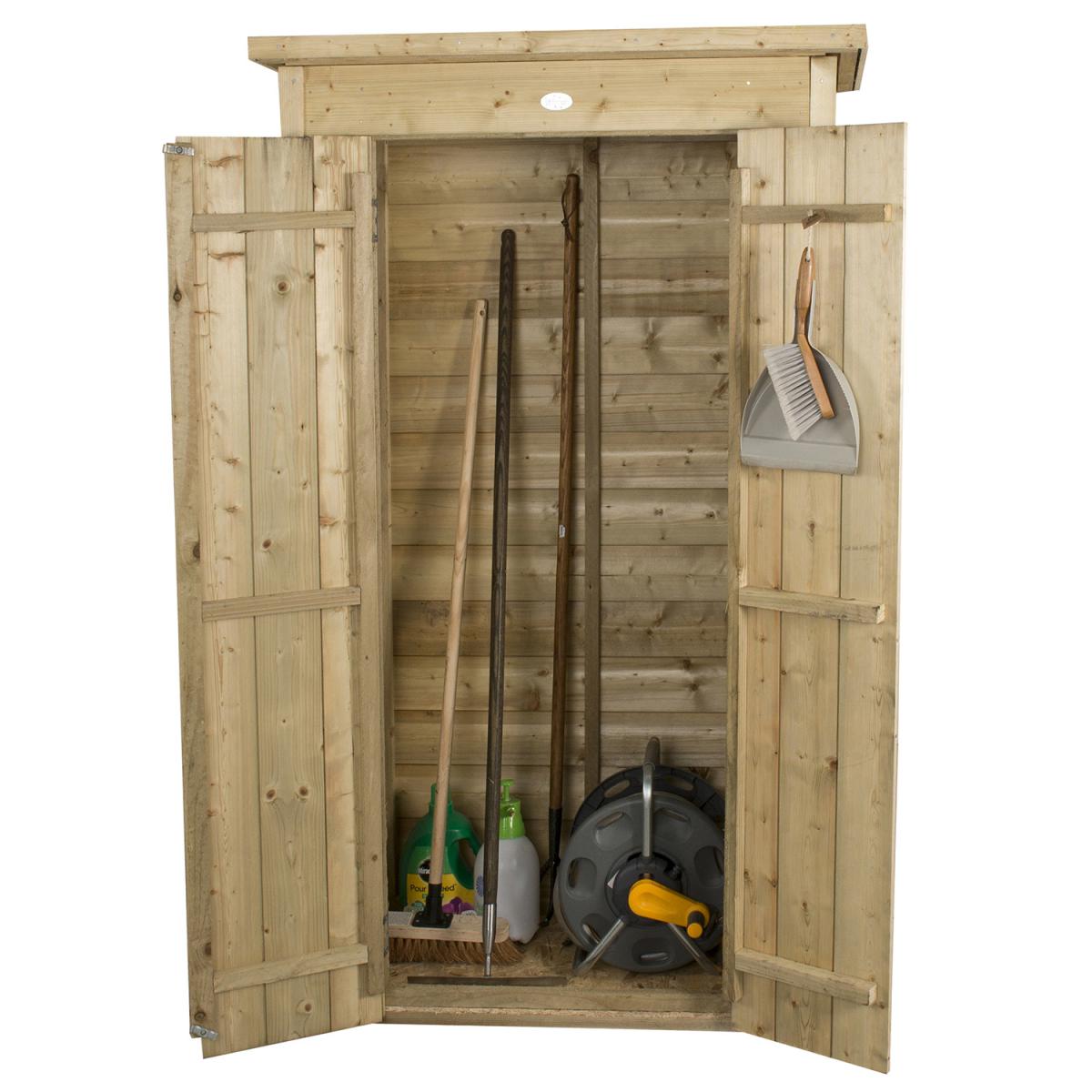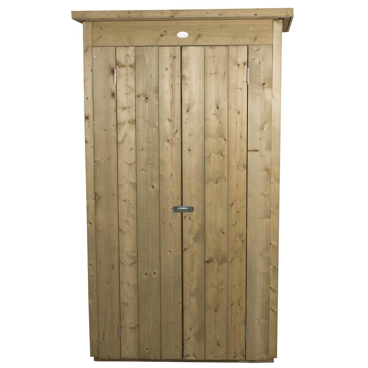 The Shiplap Tall Garden Store is an attractive and robust garden store ideal for positioning against a wall or fence, helping you save on space while keeping your garden neat and tidy. Standing at just under six foot, its tall design makes this store ideal for a wide array of outdoor equipment such as long handled gardening tools, children's toys or folding furniture. Manufactured using smooth-planed, tight fitting, Shiplap Tongue & Groove boards, along with a high quality mineral felt roof, this store is weather-tight and will keep your possessions dry no matter the weather. All timber has been pressure treated to ensure rot resistance, adding another layer of preservation. The double doors can be closed with the supplied turn-buttons and plate hasp and staple latch and secured with a padlock. This store is available with either a decorative apex roof or a neat and tidy pent roof.