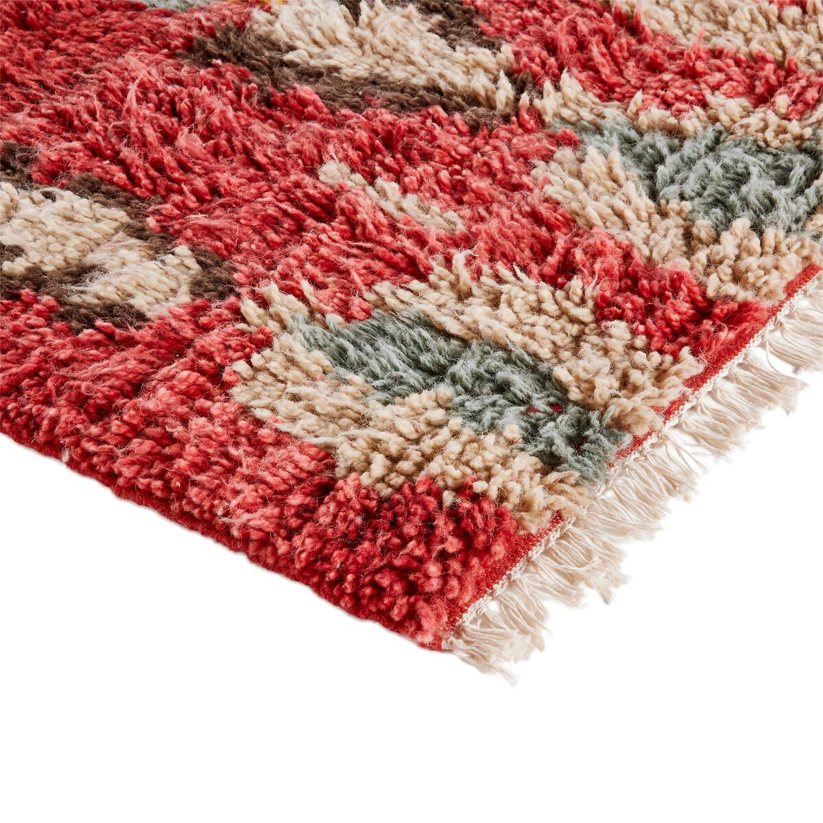This Berber-style rug in vibrant colours is a great way to inject personality into various interiors. I love how its bold pattern and lively hues can instantly energise a neutral space, making it ideal for contemporary or eclectic homes. It works particularly well layered on lighter wooden floors, as seen here, or beneath minimalist furniture to add warmth and visual interest. Practical styling tips include pairing it with simple, solid-coloured furnishings to make the design pop or matching it with accessories in similar tones for a cohesive look. Its textured, shaggy finish also adds a cosy element, making it suitable for lounge areas or bedrooms where comfort is key.