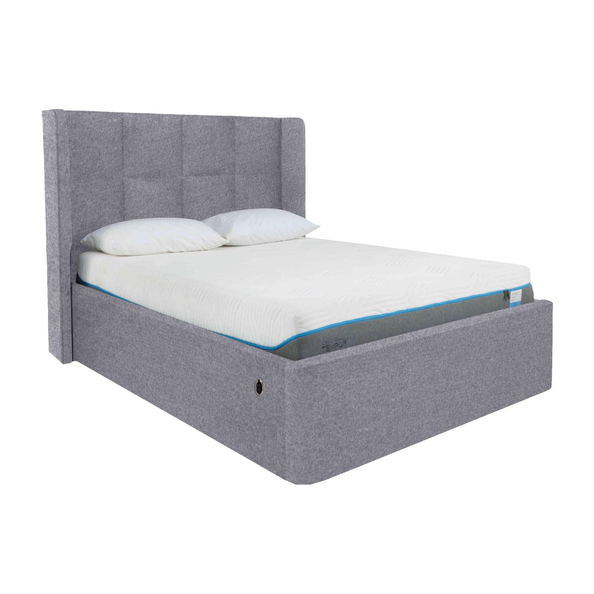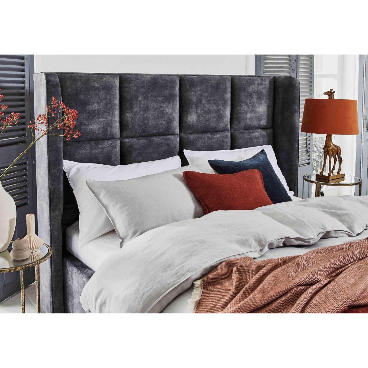 Make a statement – a bold contemporary statement – with the Shiva collection of bed frames. Comprising a bed frame and an end-lift ottoman bed frame, the Shiva range is well-crafted, practical and very luxurious thanks to the high-winged headboard that showcases simple yet eye-catching decorative stitching. The Shiva bed frame and ottoman bed frame are available in a wide choice of beautiful upholstery fabrics. Handcrafted in the UK for Furniture Village. The cool winged headboard and bold contemporary style really set the Shiva ottoman bed frame apart. It’s just perfect for modern bedrooms with its easy style and hidden storage. Why you'll love it Powered ottoman bed frame at a great-value price. Contemporary square-edged style is simple yet striking. High winged headboard showcases a bold geometric design. End-lift ottoman design hides a large underbed compartment. Electric powered lift mechanism for easy access. Supportive sprung base of beech wood slats encased in a metal frame. Available in an extensive range of upholstery fabrics. Choose double, king, or super king bed size. Entirely handcrafted in the UK for Furniture Village. What you need to know Mattress not included. Please take care when opening and closing ottoman. Clean weekly using a soft brush or vacuum with the curtain attachment. Professional cleaning advised for oil- and grease-based stains. Some fabrics can show wear on areas of more use or in direct sunlight. Available as a standard bed frame.