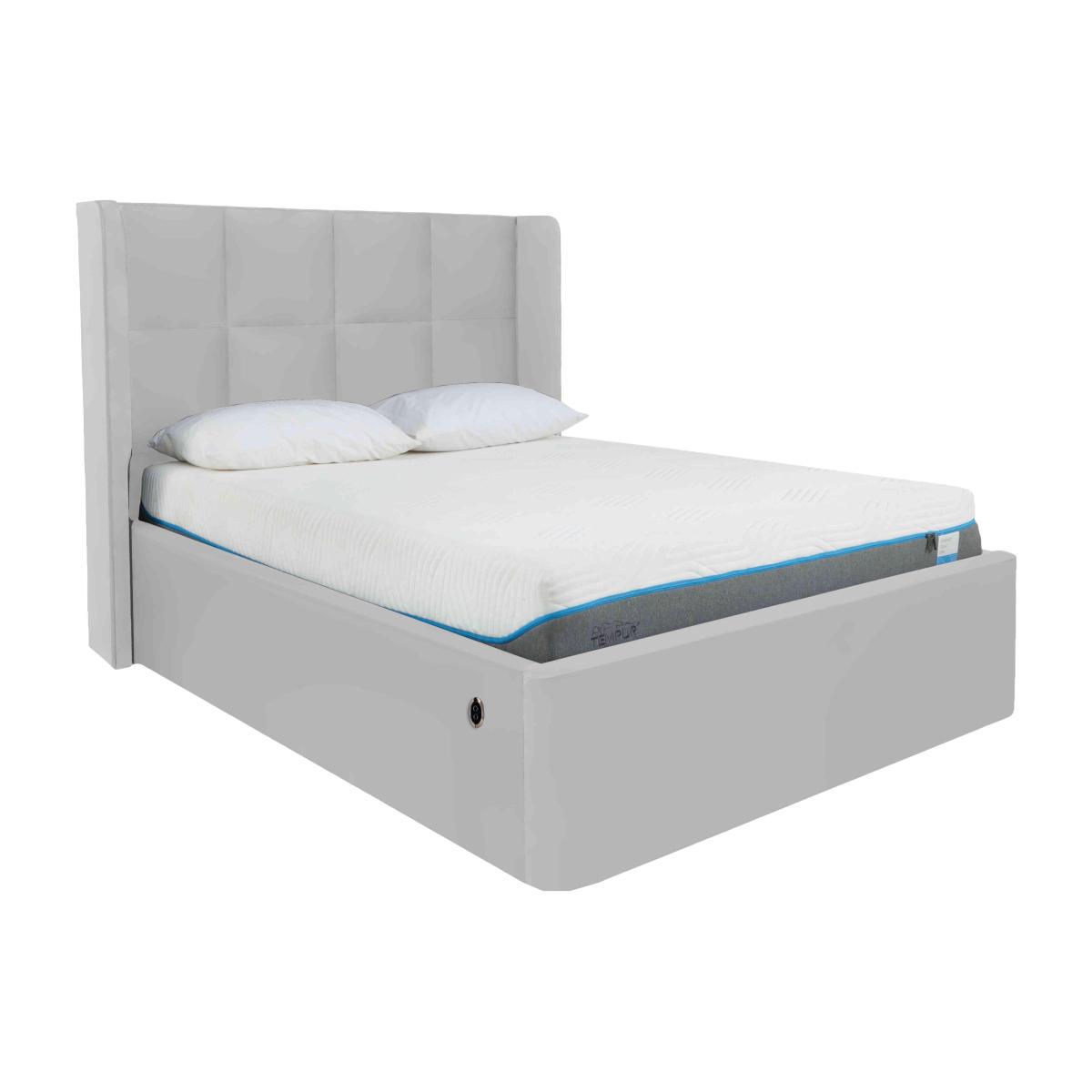 Make a statement – a bold contemporary statement – with the Shiva collection of bed frames. Comprising a bed frame and an end-lift ottoman bed frame, the Shiva range is well-crafted, practical and very luxurious thanks to the high-winged headboard that showcases simple yet eye-catching decorative stitching. The Shiva bed frame and ottoman bed frame are available in a wide choice of beautiful upholstery fabrics. Handcrafted in the UK for Furniture Village. The cool winged headboard and bold contemporary style really set the Shiva ottoman bed frame apart. It’s just perfect for modern bedrooms with its easy style and hidden storage. Why you'll love it Powered ottoman bed frame at a great-value price. Contemporary square-edged style is simple yet striking. High winged headboard showcases a bold geometric design. End-lift ottoman design hides a large underbed compartment. Electric powered lift mechanism for easy access. Supportive sprung base of beech wood slats encased in a metal frame. Available in an extensive range of upholstery fabrics. Choose double, king, or super king bed size. Entirely handcrafted in the UK for Furniture Village. What you need to know Mattress not included. Please take care when opening and closing ottoman. Clean weekly using a soft brush or vacuum with the curtain attachment. Professional cleaning advised for oil- and grease-based stains. Some fabrics can show wear on areas of more use or in direct sunlight. Available as a standard bed frame.