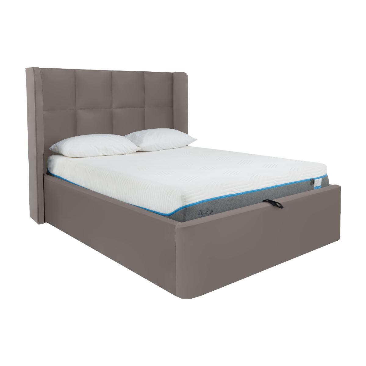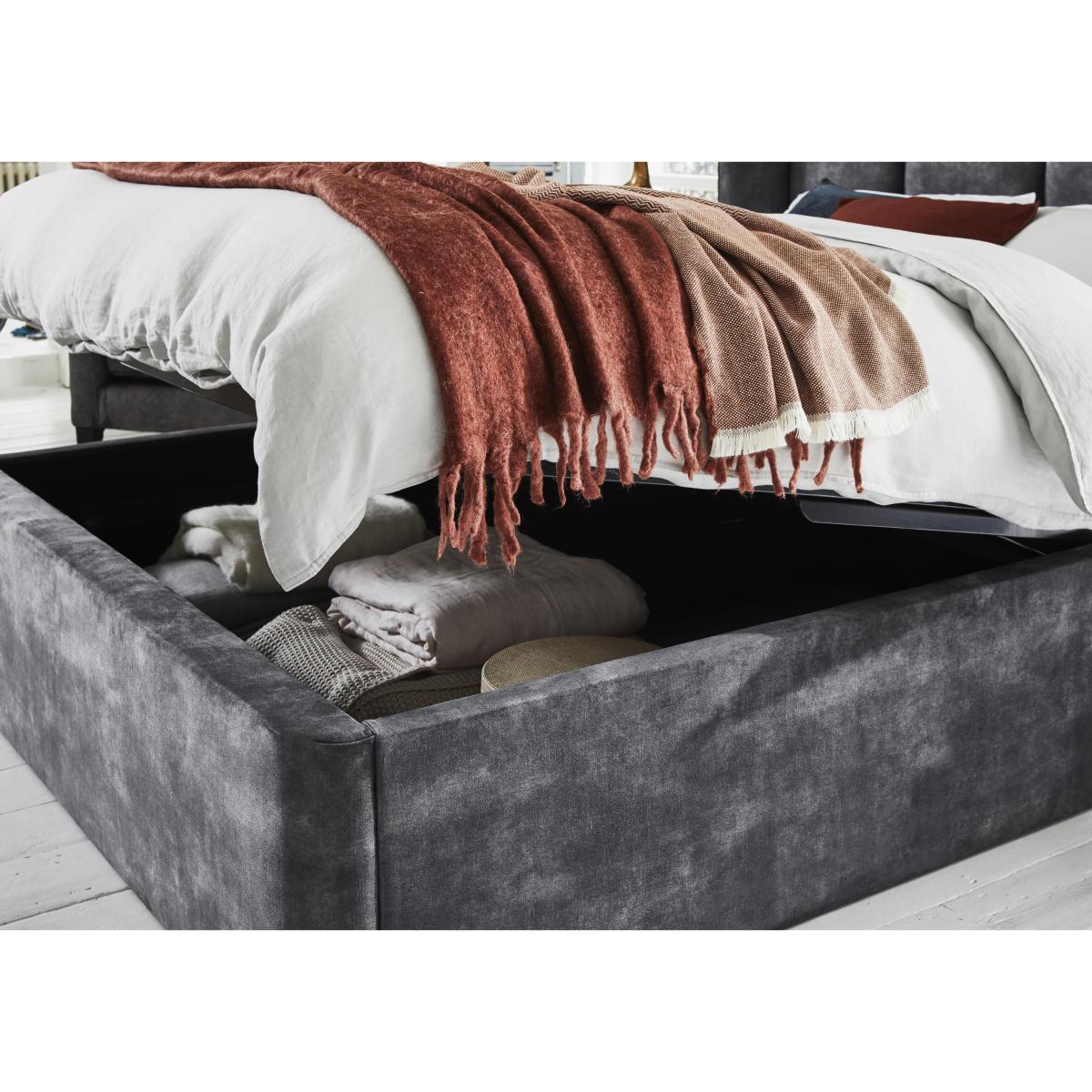 Make a statement – a bold contemporary statement – with the Shiva collection of bed frames. Comprising a bed frame and an end-lift ottoman bed frame, the Shiva range is well-crafted, practical and very luxurious thanks to the high-winged headboard that showcases simple yet eye-catching decorative stitching. The Shiva bed frame and ottoman bed frame are available in a wide choice of beautiful upholstery fabrics. Handcrafted in the UK for Furniture Village. Bold contemporary style plus spacious underbed storage. What more could you want in a statement bed frame? How about a cool winged headboard and a fabulous choice of upholstery fabrics? The Shiva ottoman bed frame really does have it all. Why you'll love it. Luxurious ottoman bed frame at a great-value price. Contemporary square-edged style is simple yet striking. High winged headboard showcases a bold geometric design. End-lift ottoman provides spacious storage. Sturdy sprung base of beech wood slats encased in a metal frame. Wide choice of beautiful upholstery fabrics. In double, king and super king bed sizes. Entirely handcrafted in the UK and only available at Furniture Village. What you need to know. Mattress not included. Please take care when opening and closing ottoman. Clean weekly using a soft brush or vacuum with the curtain attachment. Professional cleaning advised for oil- and grease-based stains. Some fabrics can show wear on areas of more use or in direct sunlight. A bed frame without ottoman storage is available in double, king and super king sizes.