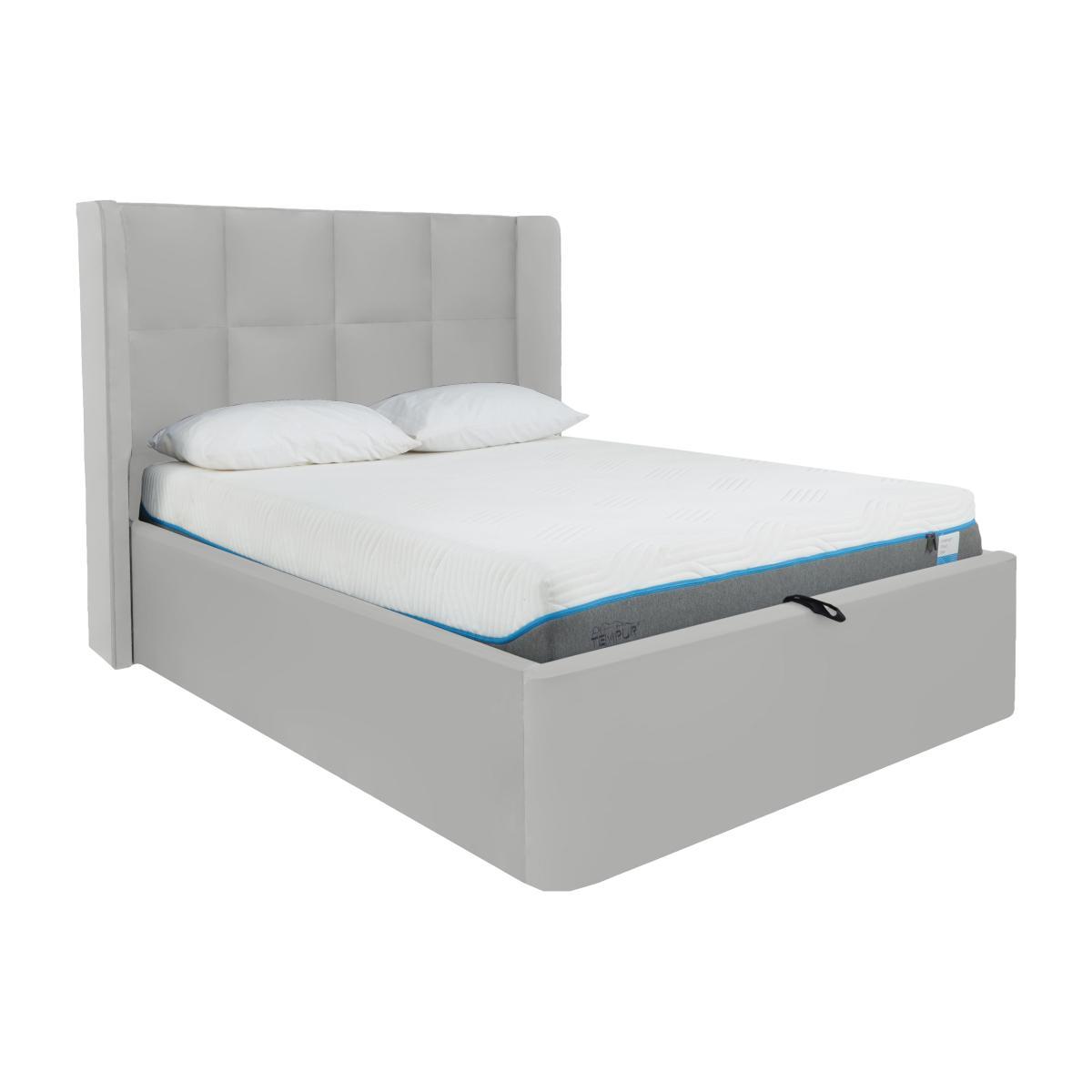 Make a statement – a bold contemporary statement – with the Shiva collection of bed frames. Comprising a bed frame and an end-lift ottoman bed frame, the Shiva range is well-crafted, practical and very luxurious thanks to the high-winged headboard that showcases simple yet eye-catching decorative stitching. The Shiva bed frame and ottoman bed frame are available in a wide choice of beautiful upholstery fabrics. Handcrafted in the UK for Furniture Village. Bold contemporary style plus spacious underbed storage. What more could you want in a statement bed frame? How about a cool winged headboard and a fabulous choice of upholstery fabrics? The Shiva ottoman bed frame really does have it all. Why you'll love it. Luxurious ottoman bed frame at a great-value price. Contemporary square-edged style is simple yet striking. High winged headboard showcases a bold geometric design. End-lift ottoman provides spacious storage. Sturdy sprung base of beech wood slats encased in a metal frame. Wide choice of beautiful upholstery fabrics. In double, king and super king bed sizes. Entirely handcrafted in the UK and only available at Furniture Village. What you need to know. Mattress not included. Please take care when opening and closing ottoman. Clean weekly using a soft brush or vacuum with the curtain attachment. Professional cleaning advised for oil- and grease-based stains. Some fabrics can show wear on areas of more use or in direct sunlight. A bed frame without ottoman storage is available in double, king and super king sizes.