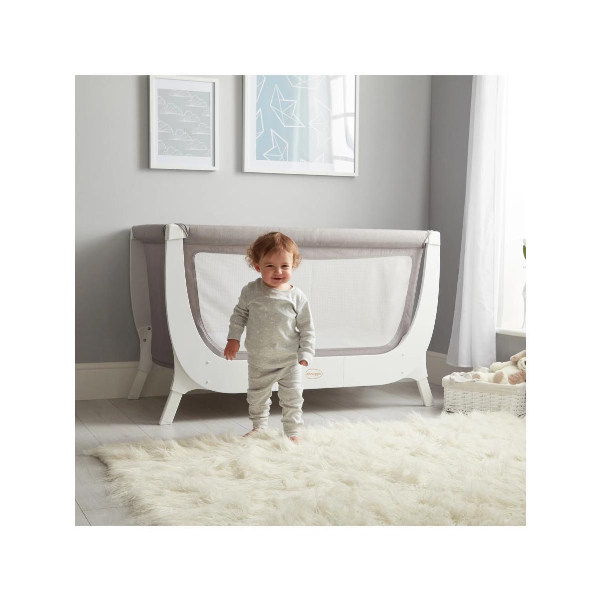 The Shnuggle Air Cot Conversion Kit allows you to convert your Shnuggle Air Bedside Crib into a stylish cot, extending your little ones cosy, safe, sleeping space until they are approximately 2 years old whilst helping to ease their transition to a cot. Designed with the same focus on breathability, function and design as the crib, the Shnuggle Air cot features large, dual-view mesh sides, removable hypo-allergenic fabrics and height adjustable legs. The uniquely designed airflow mattress (sold separately) is also made from the same hypo-allergenic fibre core as the crib, offering 50% more breathability than standard foam mattresses. Key features: Extends the life of the Shnuggle Air Bedside Crib from 6 months up to 2 years Soft padded sides - providing added protection and helps to prevent little teeth marks across the top Washable and removable hypo-allergenic fabrics What's included: Cot fabrics Extended bed base and frame extensions Required tools for assembly The cot mattress is not included and is sold separately.
