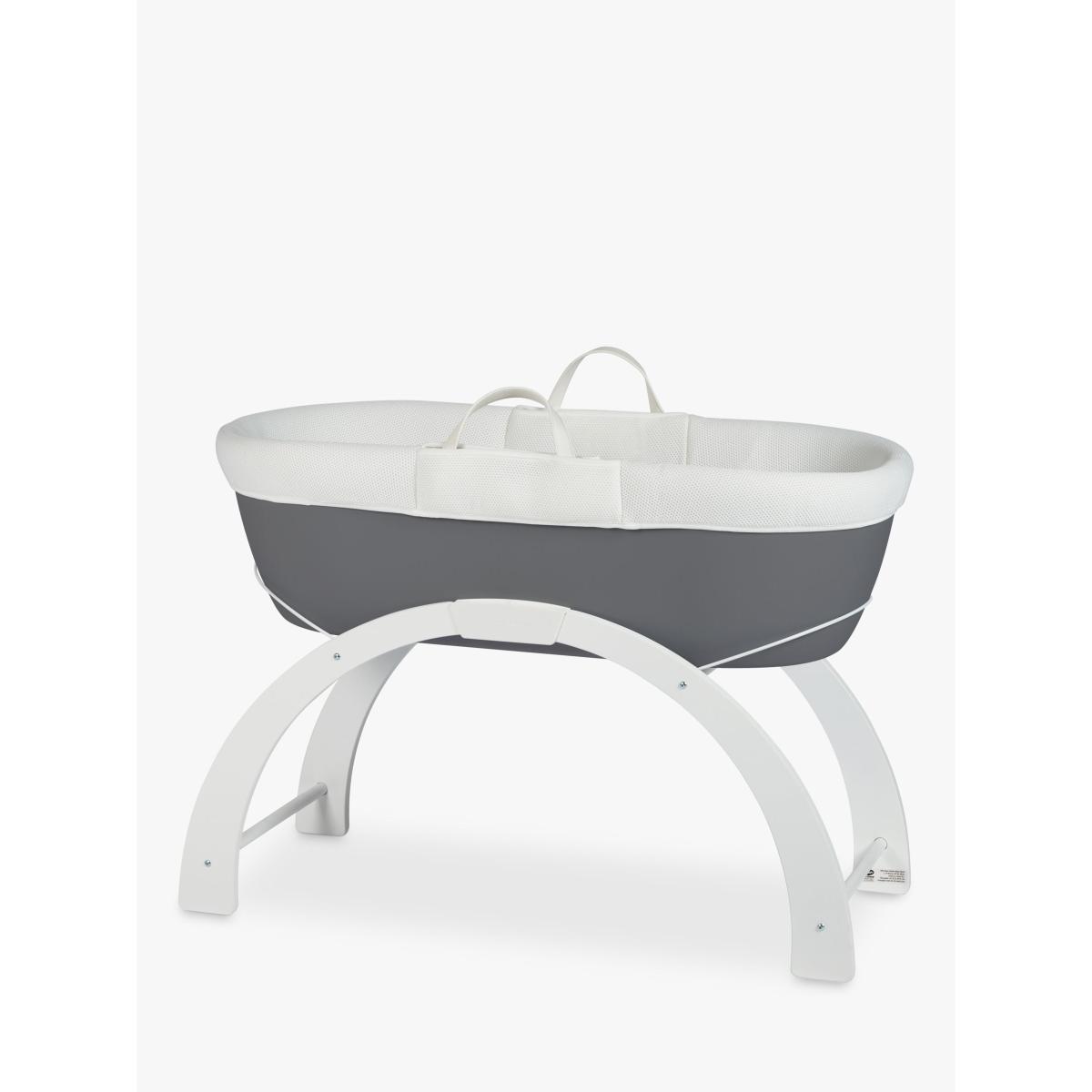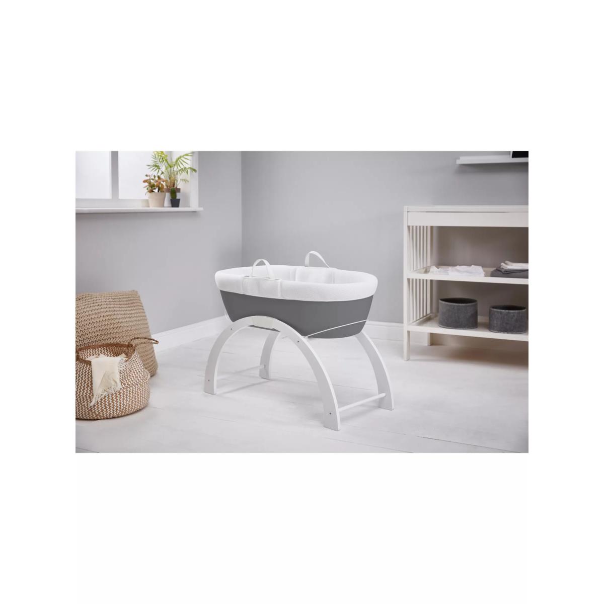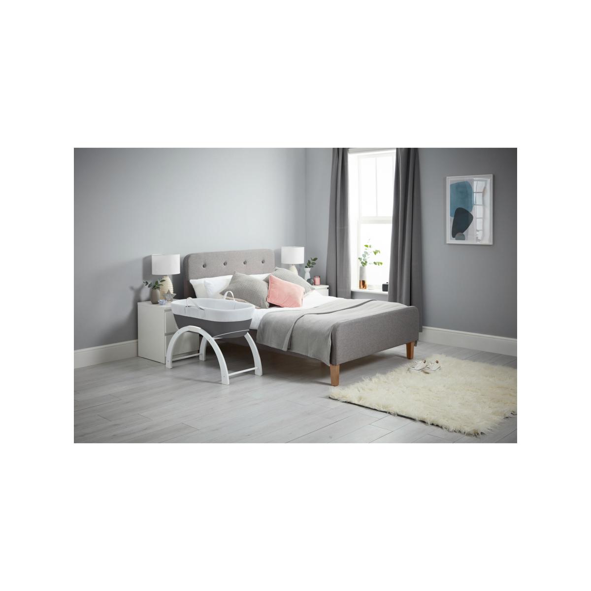 With everything you need to get started, this Dreami bundle will help you rock your little one to sleep anywhere in your home. This bundle of Shnuggle products includes: Dreami Moses Basket and Stand and 100% cotton Moses Sheets. Use this as a bedside crib for night time or move it around the home for day time naps. Offering a larger and modern alternative to the traditional wicker moses basket, it has a ventilated and hypo-allergenic base, breathable mesh dressing set and luxury quilted mattress. It's suitable from 0 – 6 months or until baby can roll over or pull themselves up. The stand can be used in two positions: a fixed bed height or a low-level rocking height. The multi-functional Curve stand can easily transform from a low-level rocking stand to a fixed bed height position. Perfect for rocking your baby to sleep anywhere around the house, it clicks-together in no time for fast and easy assembly. The moses basket fitted sheets and made from super soft and breathable cotton that will help to regulate baby’s temperature.
