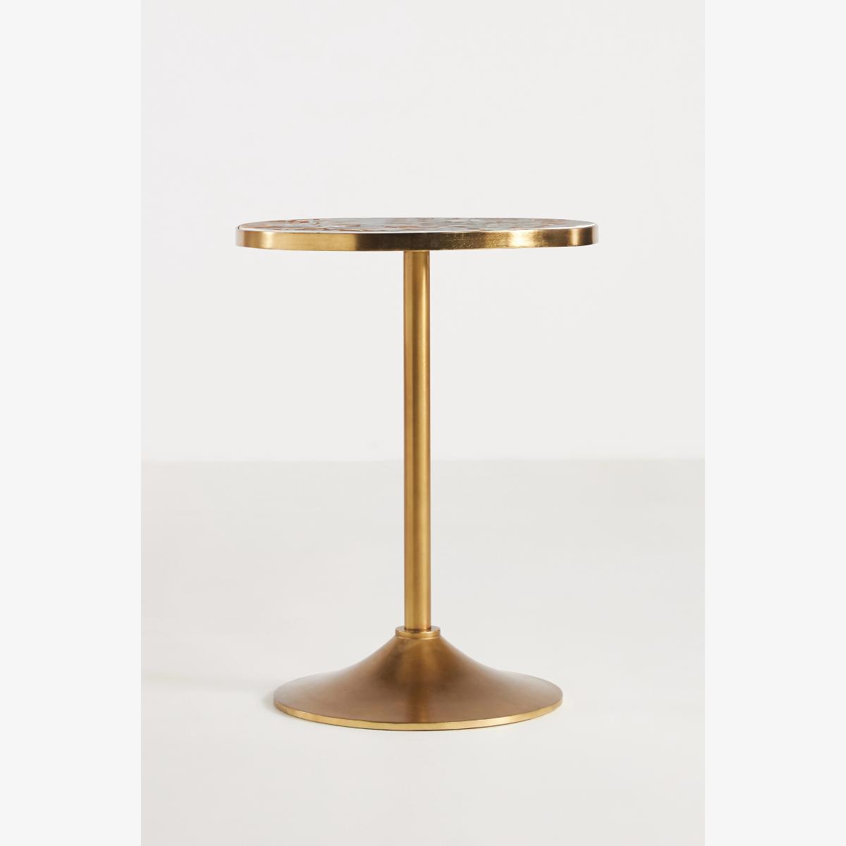 Since the days of ancient Egypt, craftsmen have been using inlaid bone to decorate surfaces, and for good reason: it embodies a natural sheen that adds instant luxury to any space. Featuring an intricate flora-inspired pattern, this side table is a sophisticated addition to your living area decor. * Iron Structure; Brass-plated finish * MDF top with bone and resin inlay; Iron hardware * Wipe with a clean, soft cloth * Bone tile is porous and can stain, particularly with dark liquids * Wipe spills immediately; Avoid abrasive cleaners to protect finish * Suitable for indoor use * Imported
