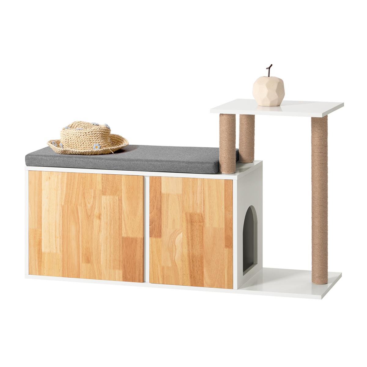 2 in 1 design, this cabinet can be used as a shoe bench that doubles as a cat house or litter box enclosure with scratching posts. The compartment behind the right door can be as a litter box enclosure. The arch-shaped hole on the right side of the cabinet is convenient for your cat to access. 3 scratching posts are fully wrapped with safe and natural sisal ropes, will help release the scratching nature and promote exercising for your cat.