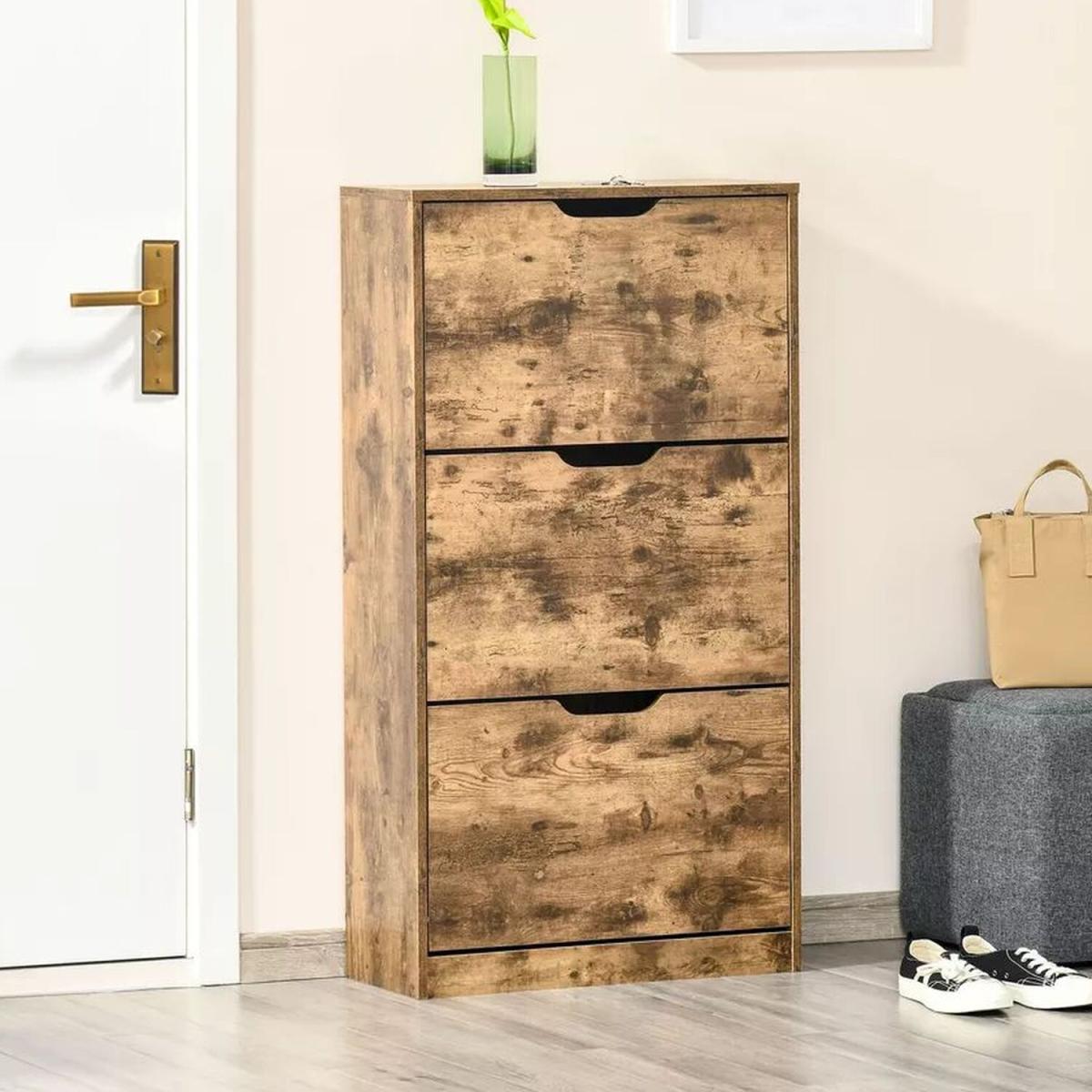 Shoe Cabinet Rack with 3 Flip Drawers - Brown