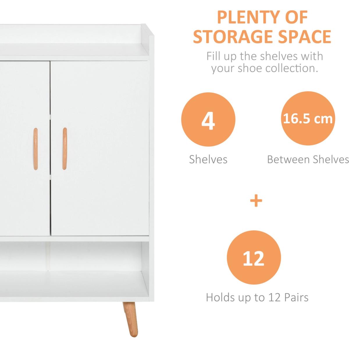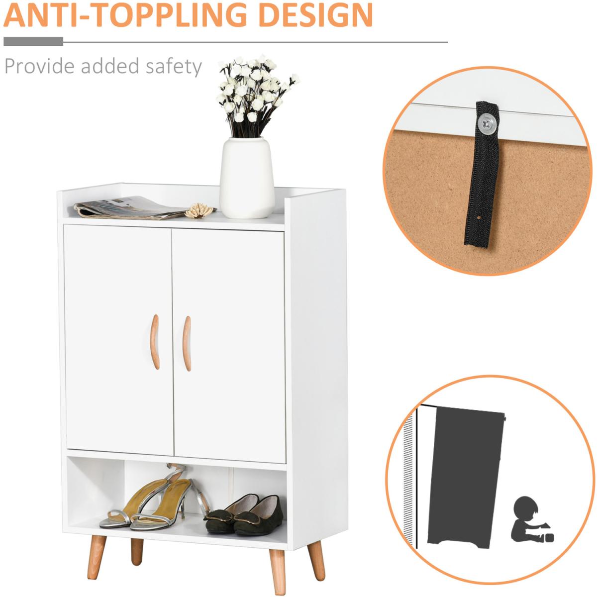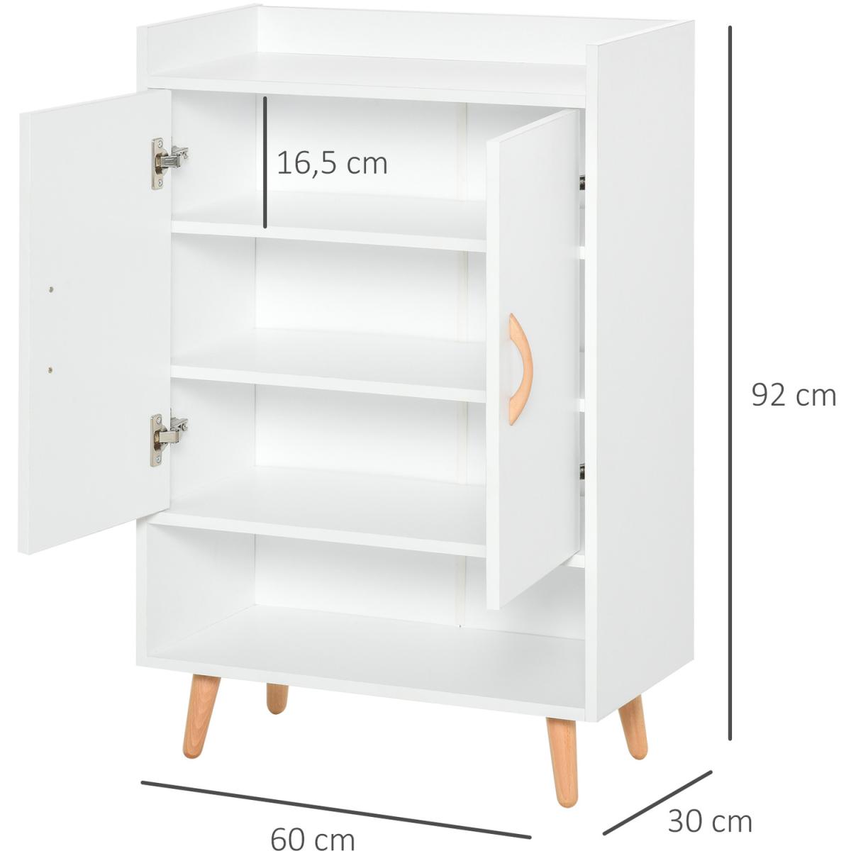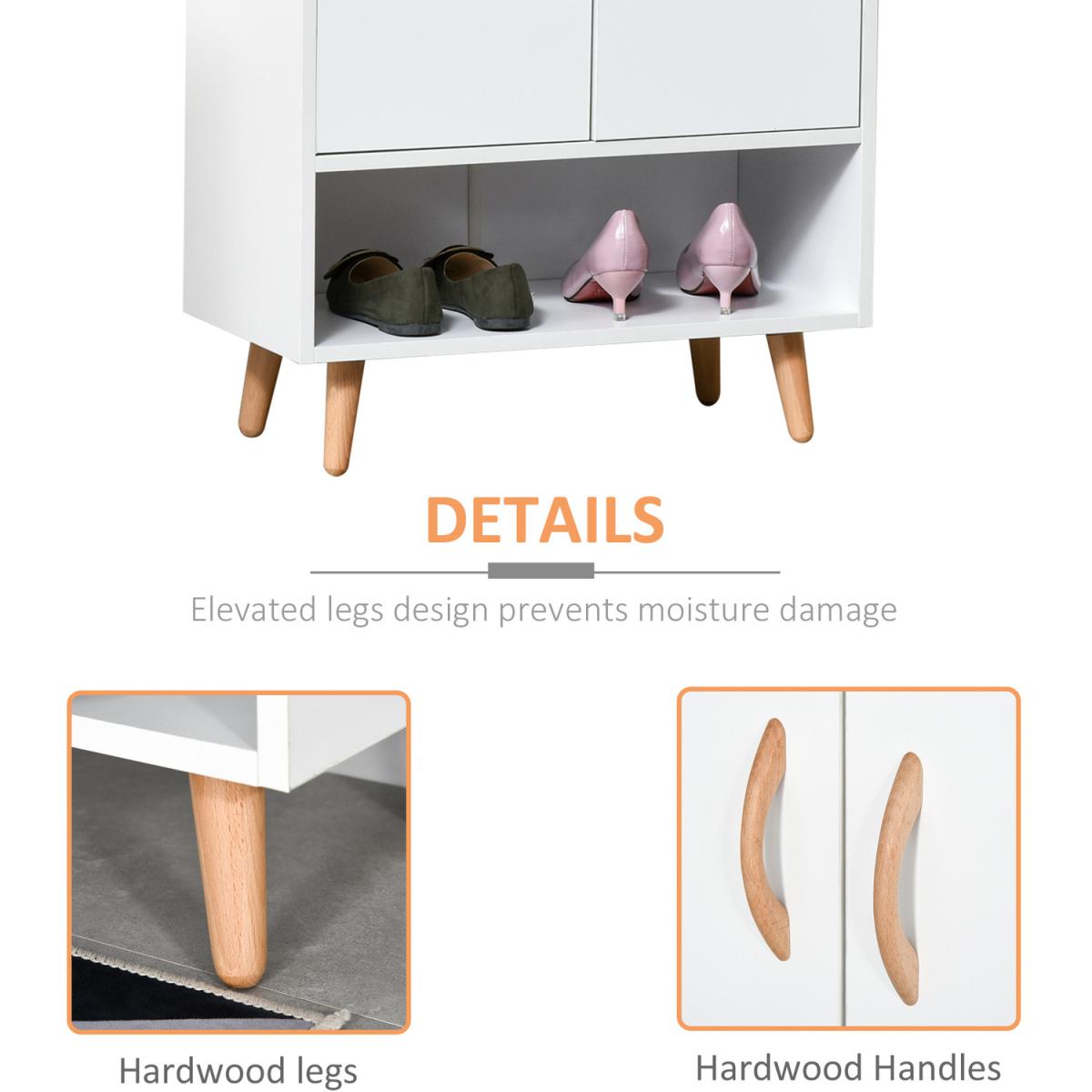 Shoe Cabinet Storage Organizer with Doors and Shelves - White and natural
