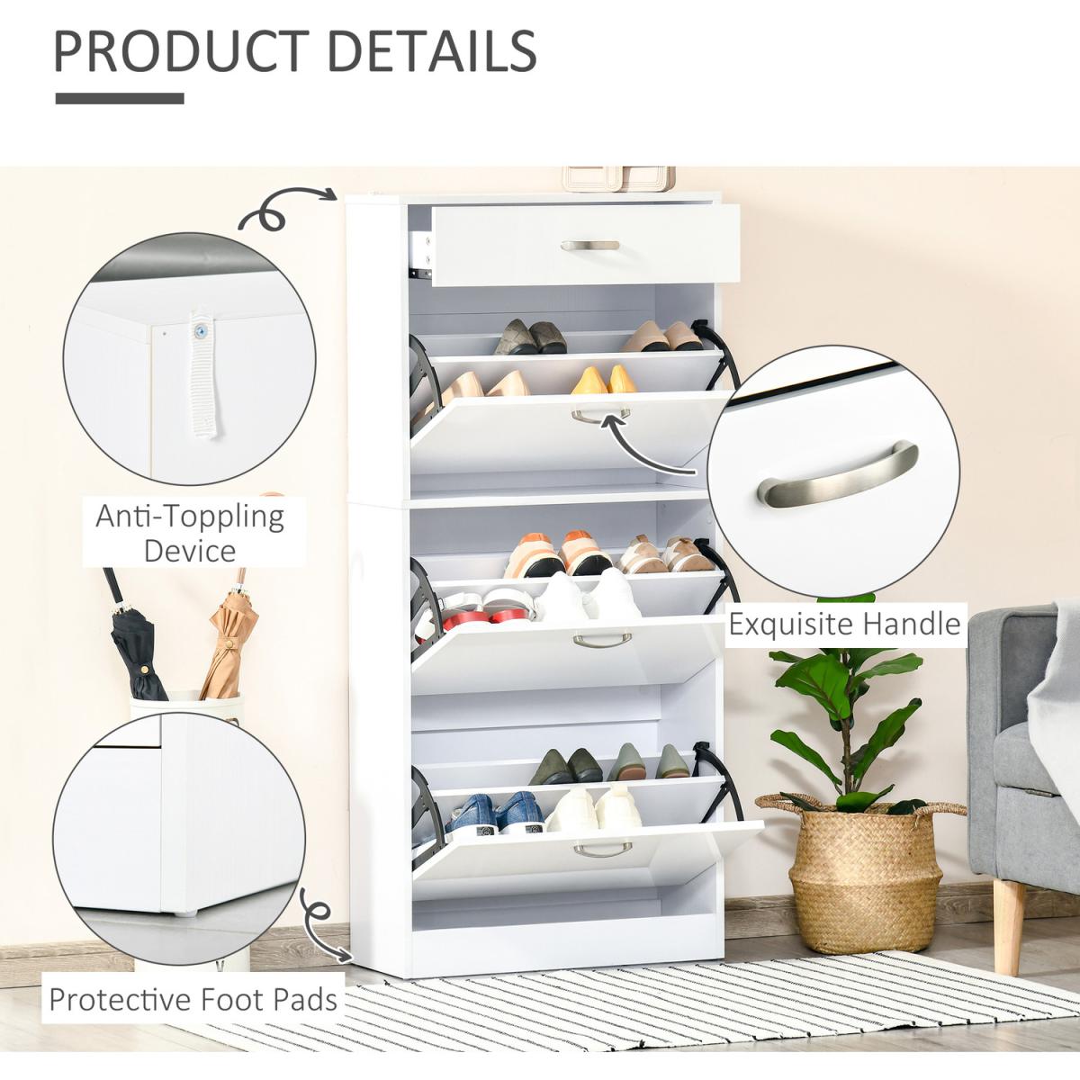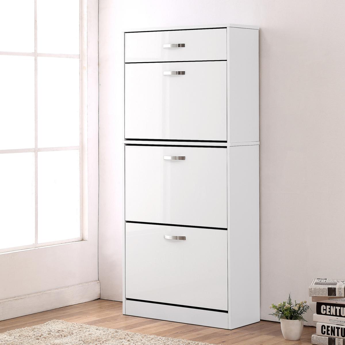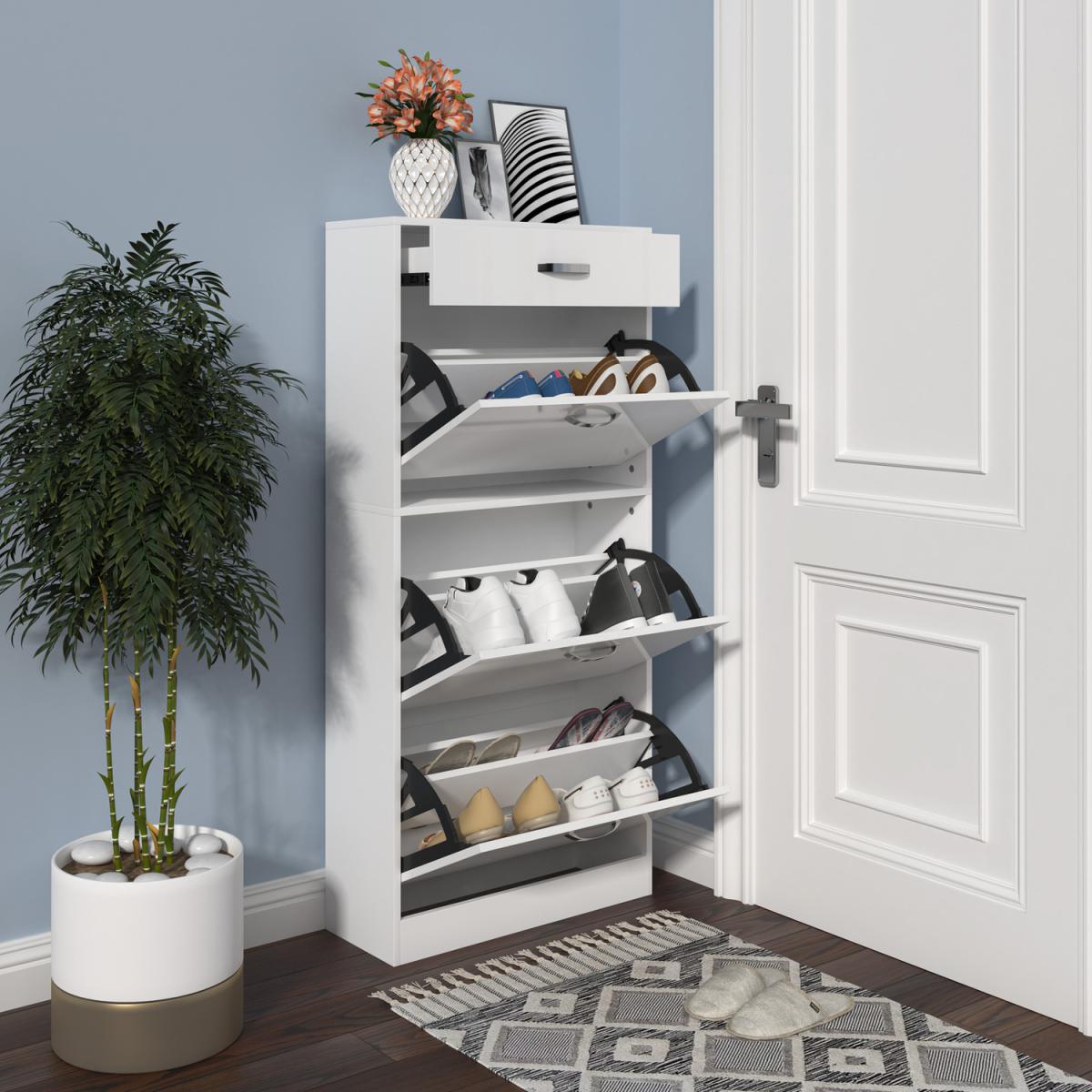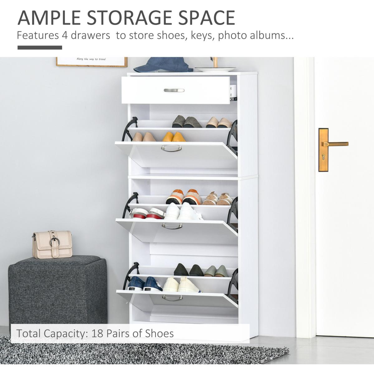 Shoe Cabinet with 4 Drawers & Flip Doors - White