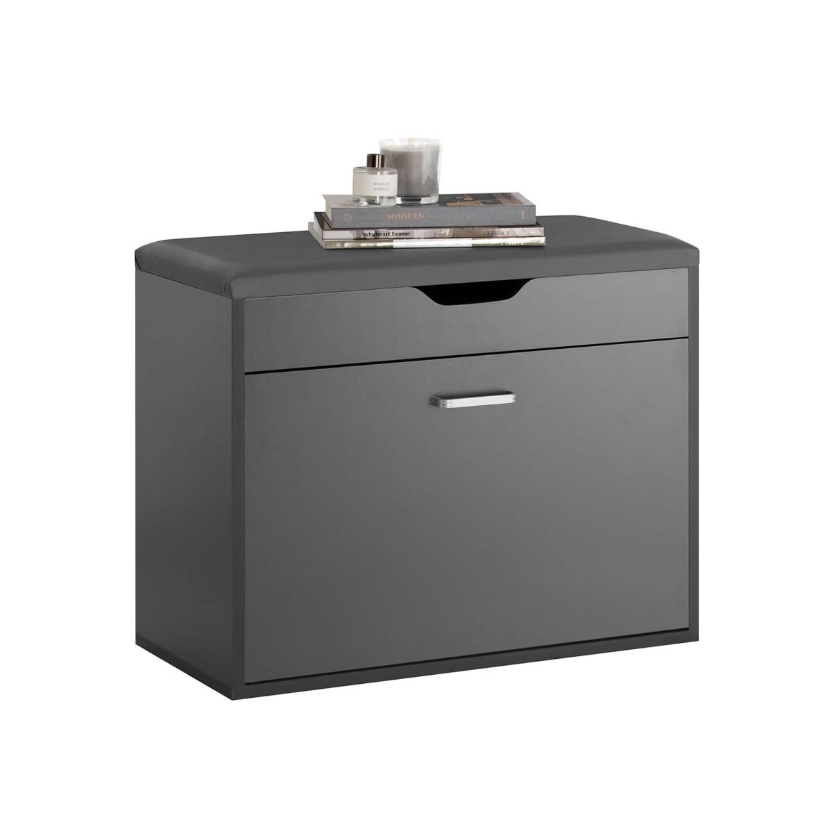 Shoe Rack Shoe Bench with Folding Padded Seat - Grey