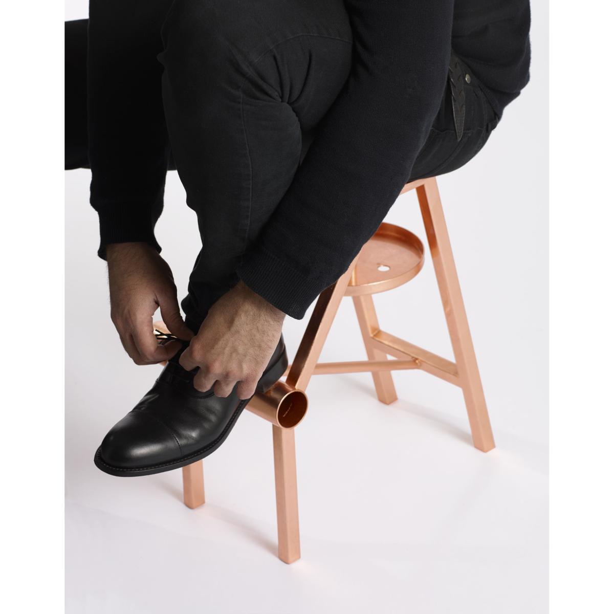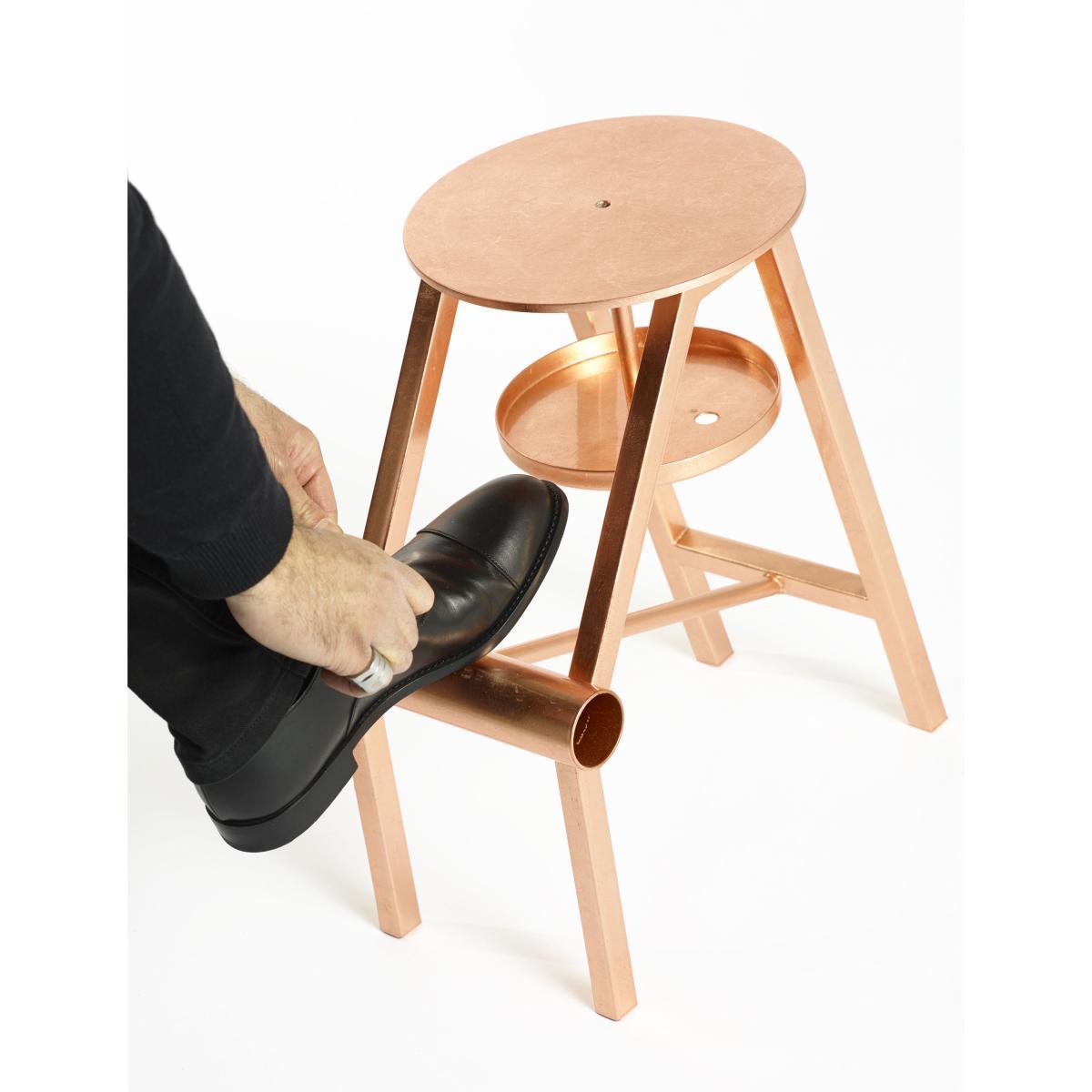 Lacing up your footwear has never been so pleasant with stool Shoe ! Metal stool, created to wear, take off and clean the shoes. Equipped with at tray to place the accessories for the shoes cleaning.