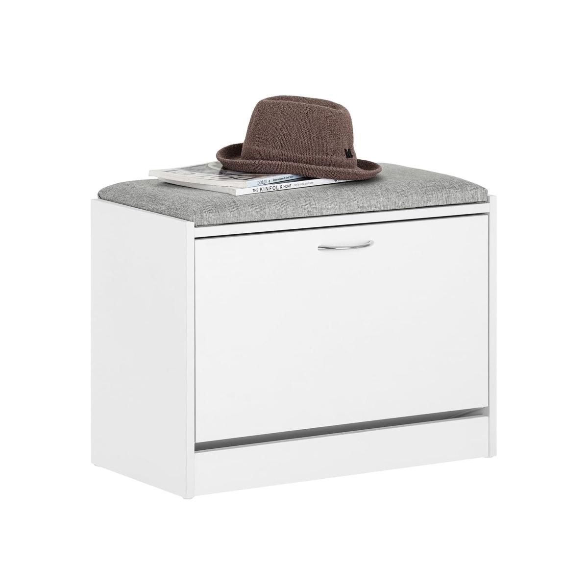 Modern design shoe cabinet with soft padded cushion, good choice for hallway and living room. The convenient cushioned seat, which is removable, is ideal for sitting while putting on and taking off shoes. There are two boards in the flip-drawer, which are removable for setting distance due to different sizes of shoes.
