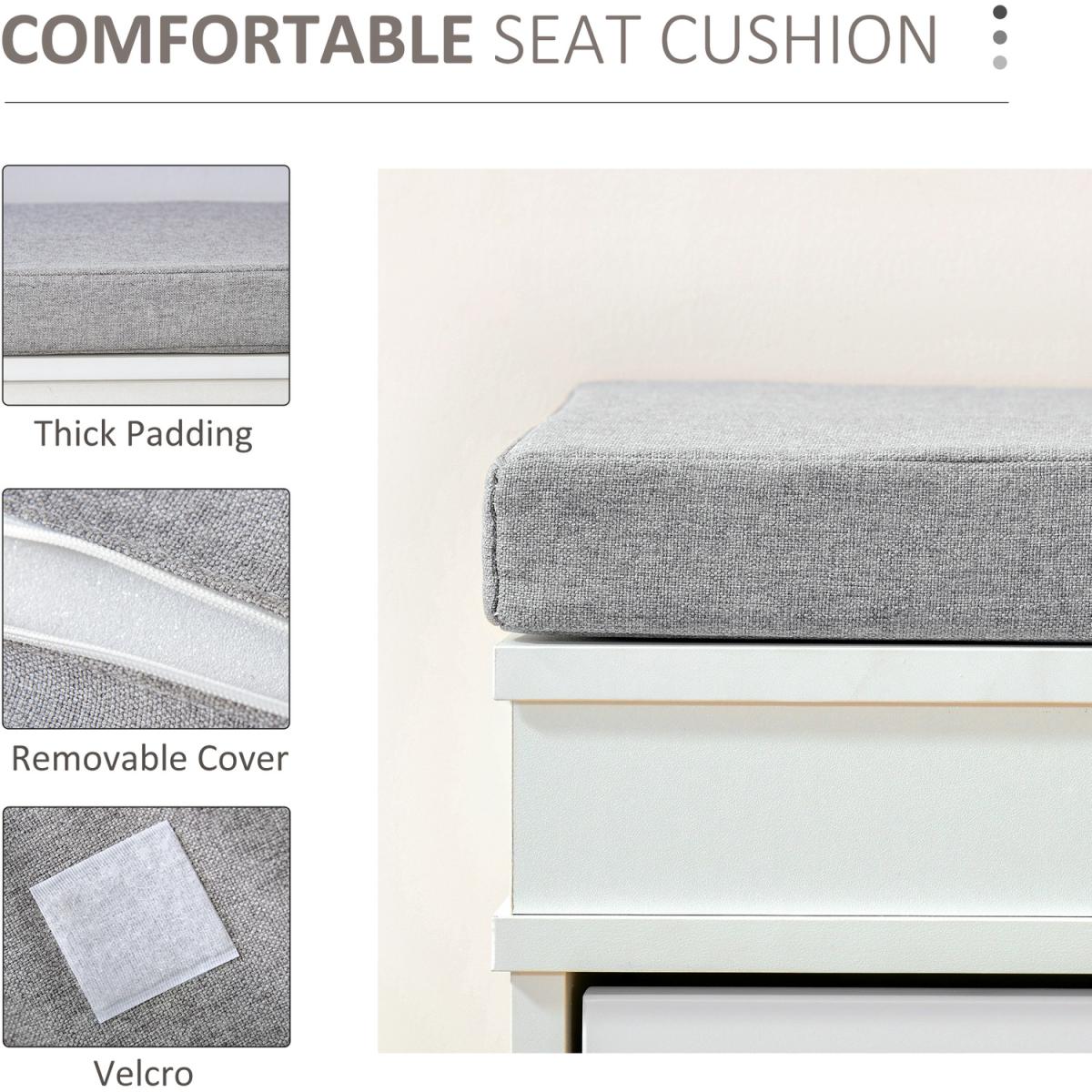 Shoe Storage Bench with Seat Cushion and 2 Drawers - White and grey