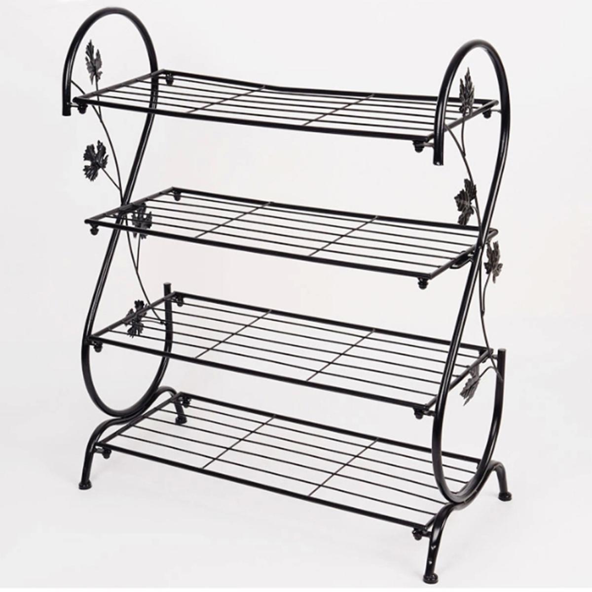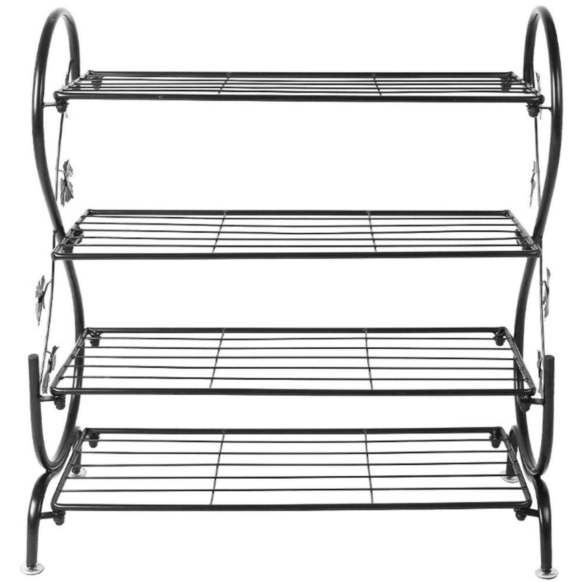 Shoe Storage Rack S Shape Metal Shelf 4 Tier - Black