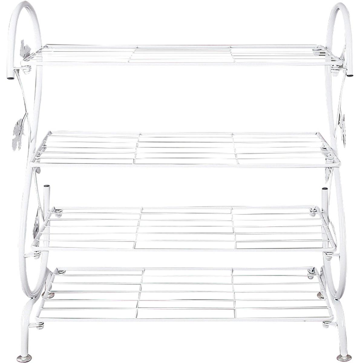 This 4 tier shoe rack keeps all of your shoes neat and organized and keeps your entryway free of clutter. Constructed with sturdy iron in a plain white/black finish that fits perfectly into any colour palette. It comes with four open shelves that maximize your storage place and give it a light and airy look. It is ideal for storing up to 12 pairs of your favourite sneakers, boots and flats in this freestanding shoe rack. Easy assembly is required.